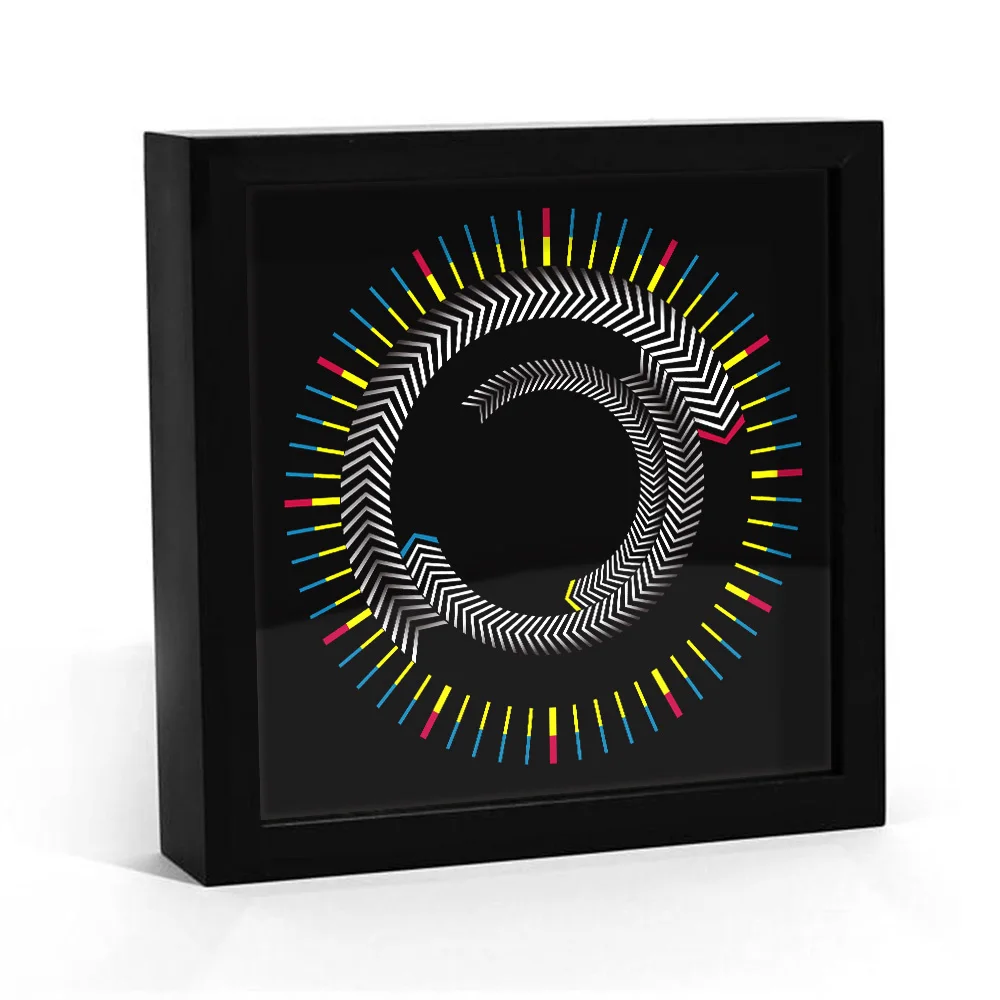 Размеры указаны в 22 см (В x Ш) и 4,5 см, заключенная в черную рамку и вращающиеся элементы изготовлены из акрилового пластика. С внутренней стороны по бокам отражает, что дает хороший эффект.