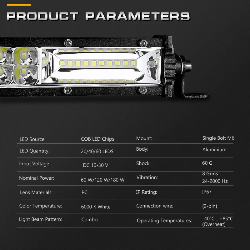Форма пучка дальнего света: 30 градусов точечный луч + 60 градусов луч (7 дюймов пятно луча; 13/20 дюймов комбинированный луч)