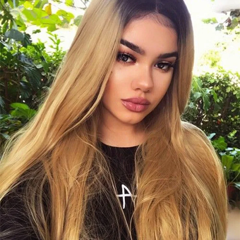 T1B 27 Омбре блонд пучки с кружевной застежкой Прямые Цветные бразильские человеческие волосы пучки с фронтальной застежкой не-Реми