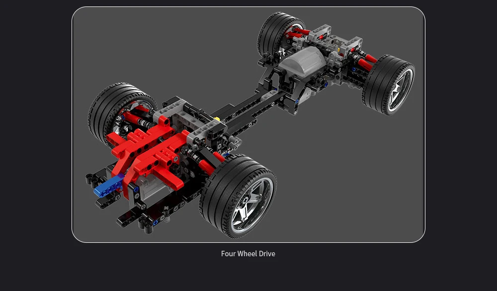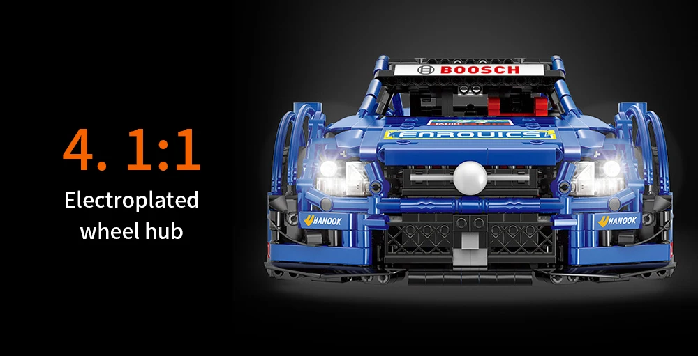 Посылка в комплект входит:1970 x автомобильный монтажный блок, 1 x серводвигатель, 2 x мотор среднего размера, 1x2,4G литиевая батарейная коробка, 1 x светодиодный фонарь 1 x пульт дистанционного управления