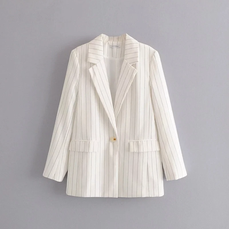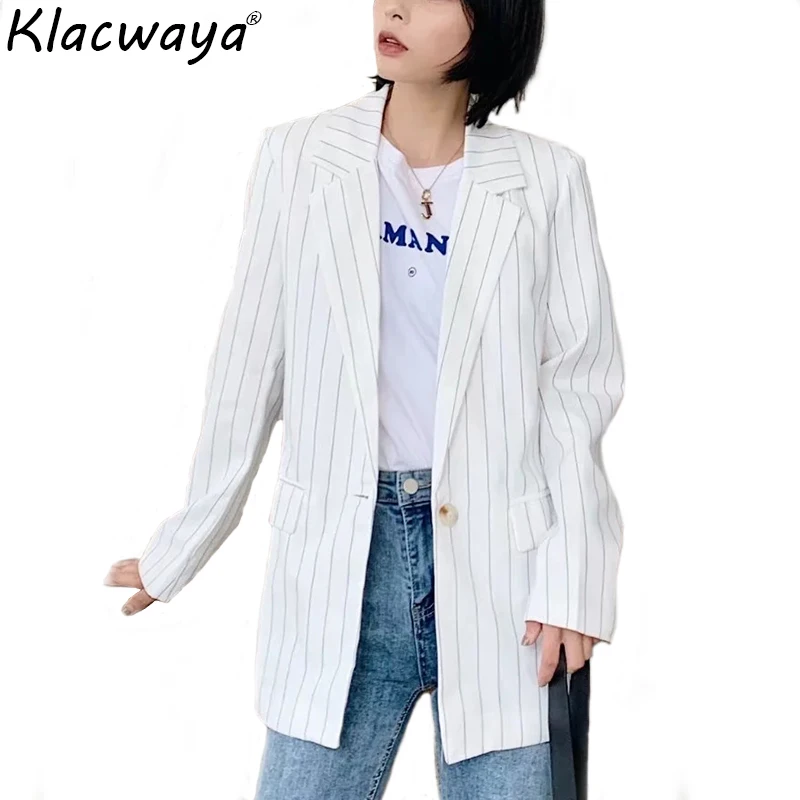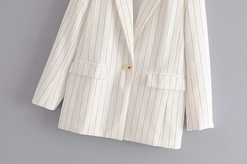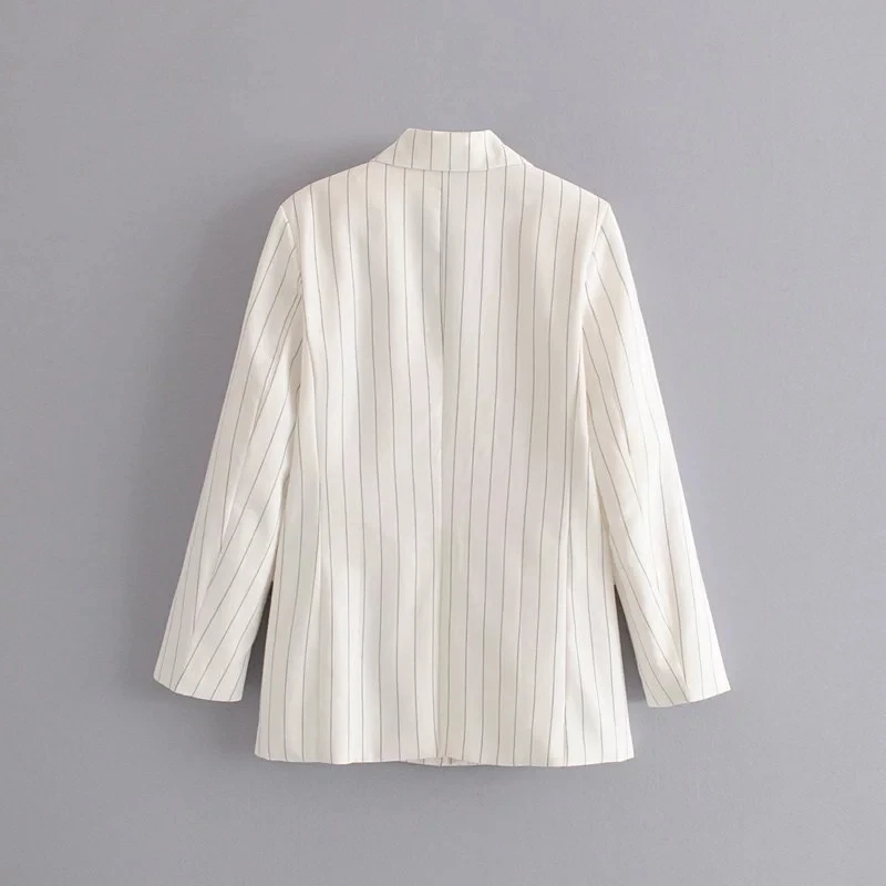 Винтажные женские полосатые куртки, костюмы для офисных дам, модные пальто с отложным воротником, женское уличное элегантное Свободное пальто для девочек