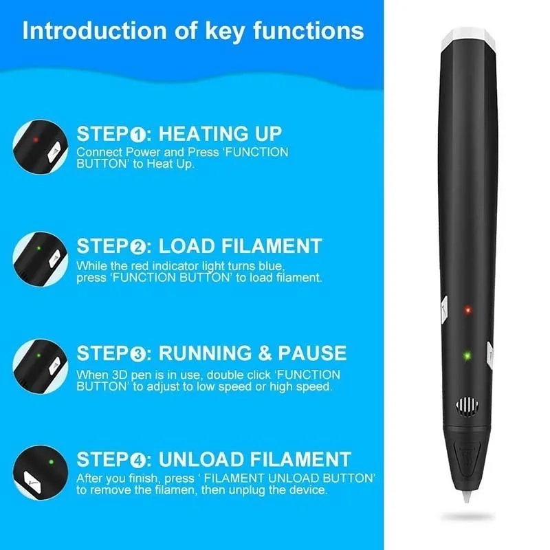 Количество:1 * ручка, 1 * руководство, PLA нить, 2 * крышка пальца, 1 * кабель для передачи данных, 2*5 м PCL нить