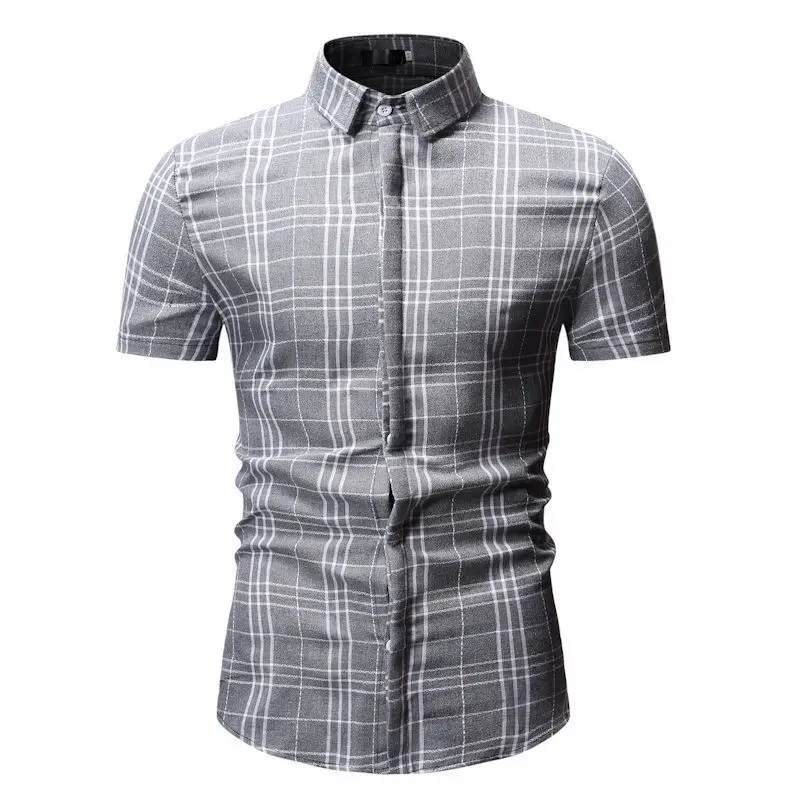 Новая Мужская Летняя Повседневная рубашка, мужская клетчатая рубашка с коротким рукавом, топы, футболка