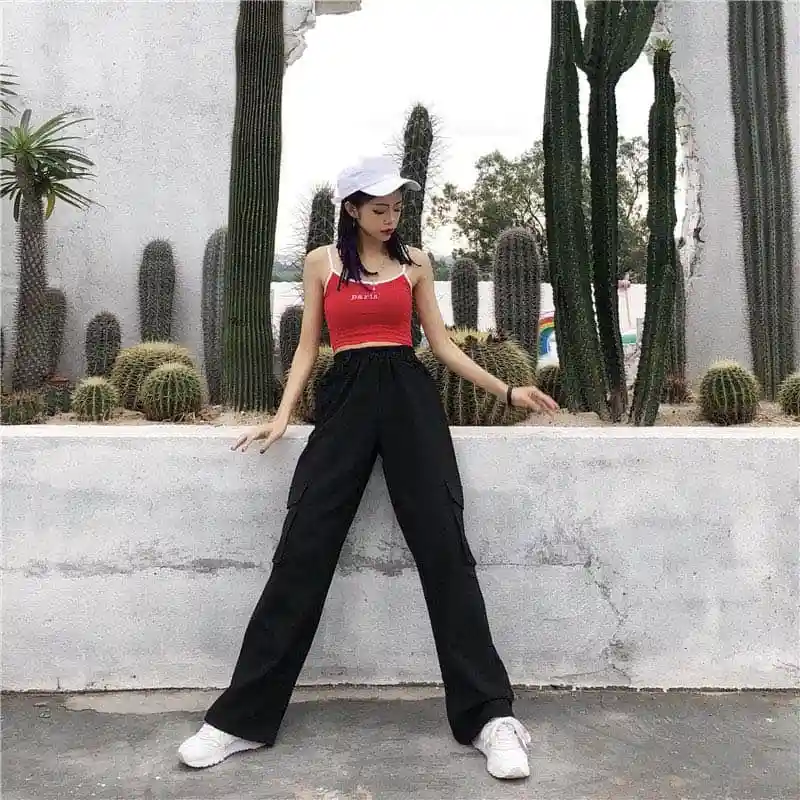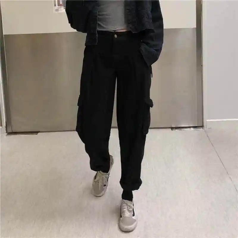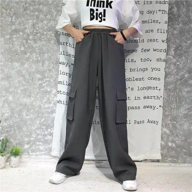 Брюки женские летние MINGLIUSILI серые с широкими штанинами высокой талией свободные