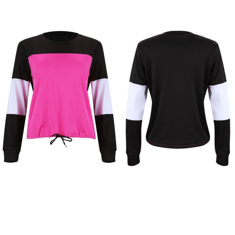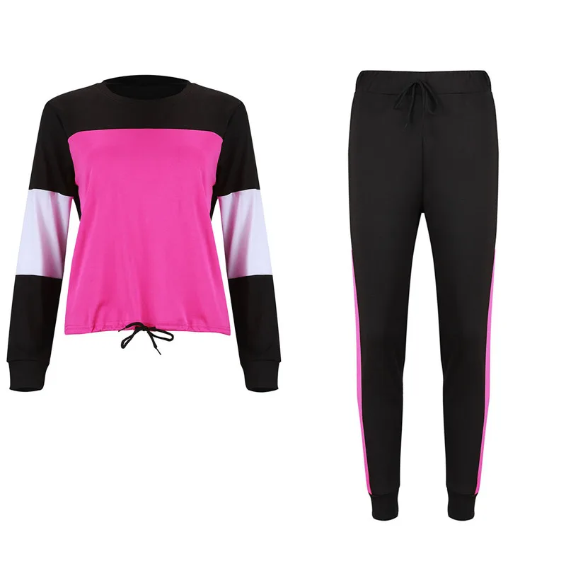 Женская одежда, новинка, женская спортивная футболка с длинными рукавами, топы, длинные штаны, комплект из 2 предметов, Модный женский спортивный костюм, цветной повседневный костюм в стиле пэчворк!