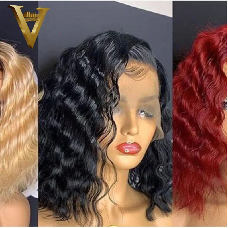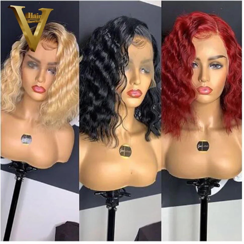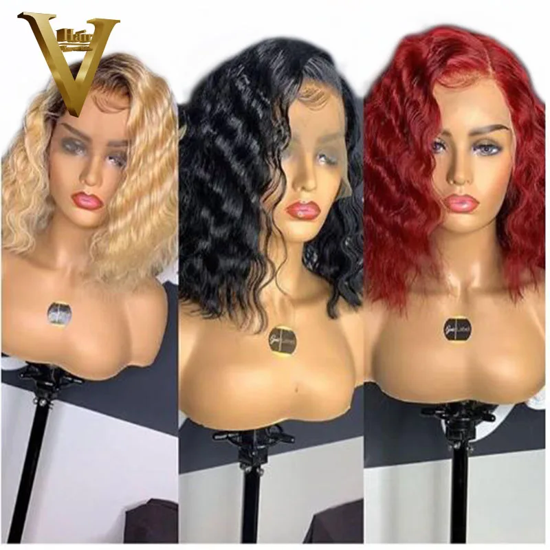 13x6 короткий парик с крупными волнами кружева фронта человеческих волос парики для черных женщин красный цвет Омбре блонд Боб Cut Preplucked бразильский Реми