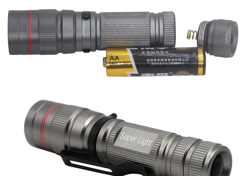 Портативный фонарь светильник Q5 светодиодный светильник для вспышки с увеличением зума маленький светильник для ручки светильник для вспышки Мощный мини-светильник для охоты с помощью батареи АА![]()
