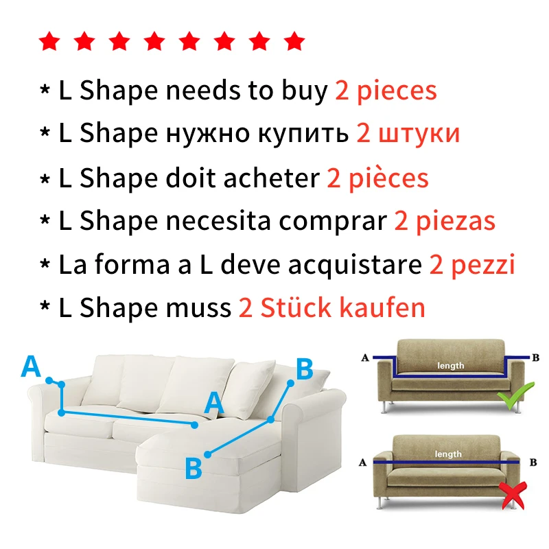 L-образный диван должен купить 2 шт. диванные чехлы Пожалуйста, измерьте длину AA и BB, как показано на рисунке ниже