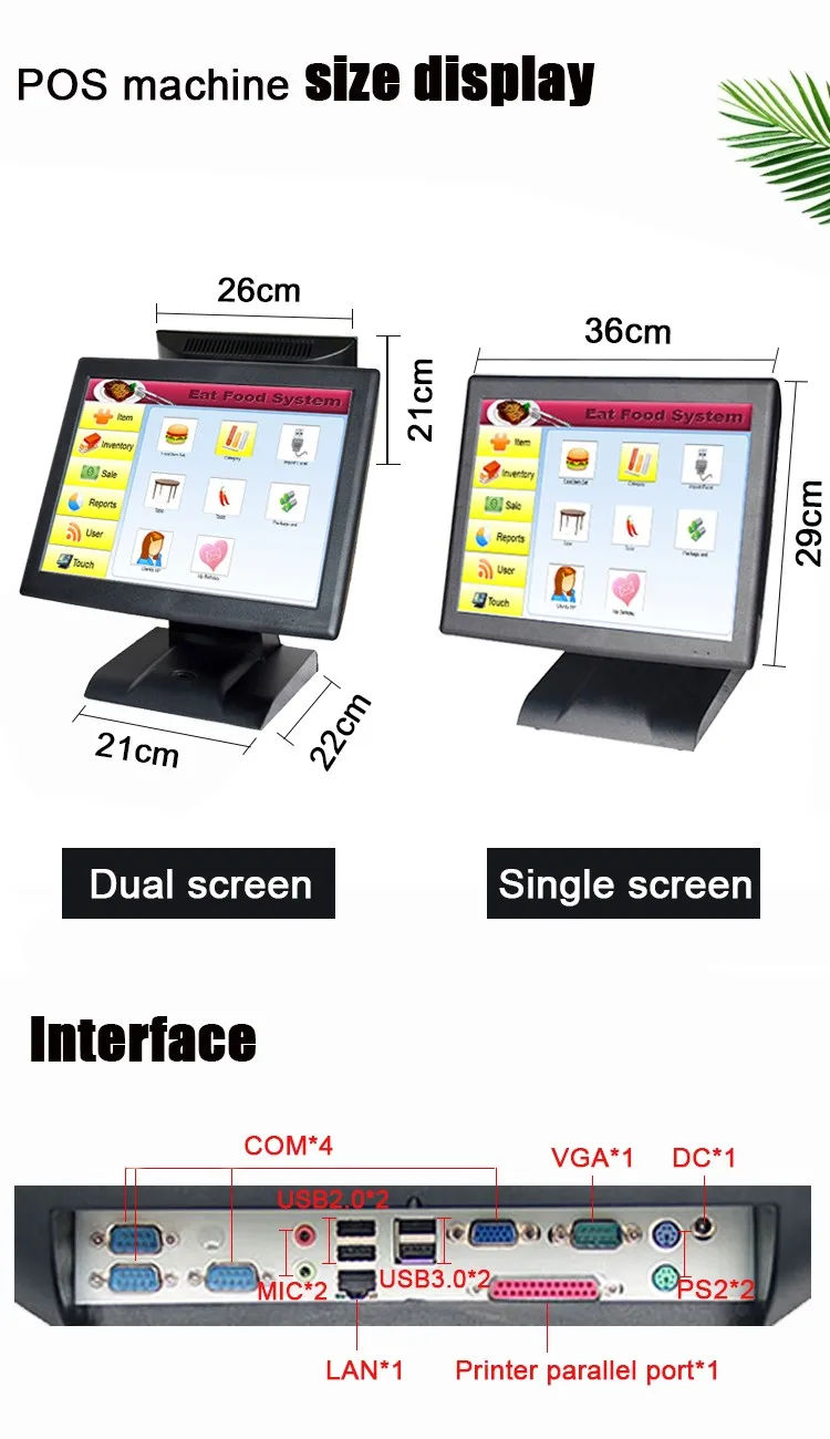 Прямая продажа с фабрики 15 дюймов Двойная POS система двойной экран POS терминал с POS принтер