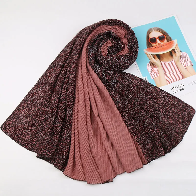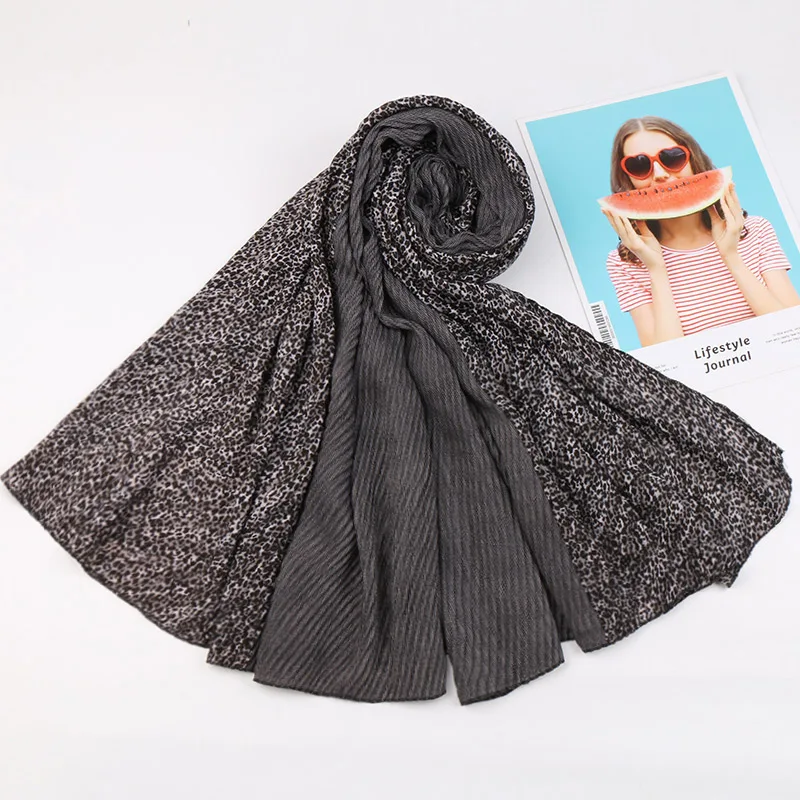 Хиджаб шарф в стиле пэчворк леопардовые шали мусульманские шарфы от морщин хлопок рябь обертывания эластичная повязка на голову шарфы 10 шт./лот
