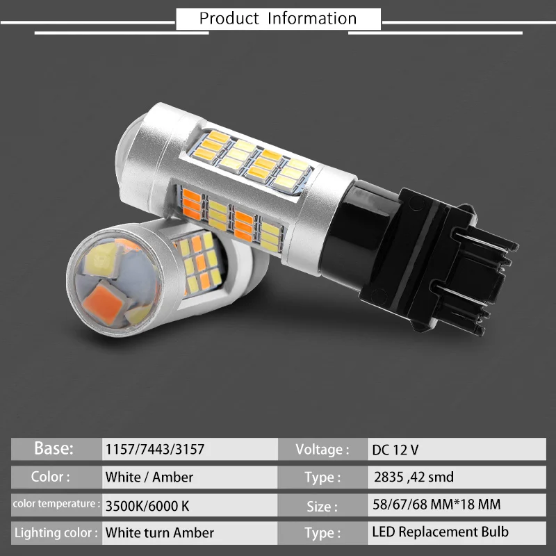 1157 3157 7443 двойной Цвет светодиодный лампы 2835 42 SMD LED Сигнал поворота светильник s белого и желтого цвета BAY15D T25 T20 светодиодный автомобиль, сигнализирующий фонарь стоп-сигнал светильник