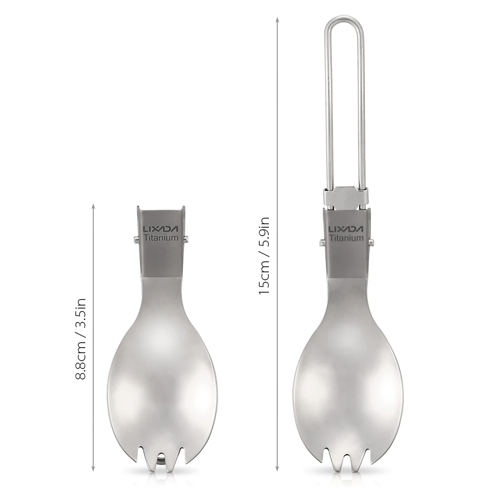 Этот spork изготовлен из Титан, легкий и прочный. Его можно сложить, когда он не используется, очень удобно для кемпинга, пеших прогулок, альпинизма, а также хорошо подходит для домашнего использования.