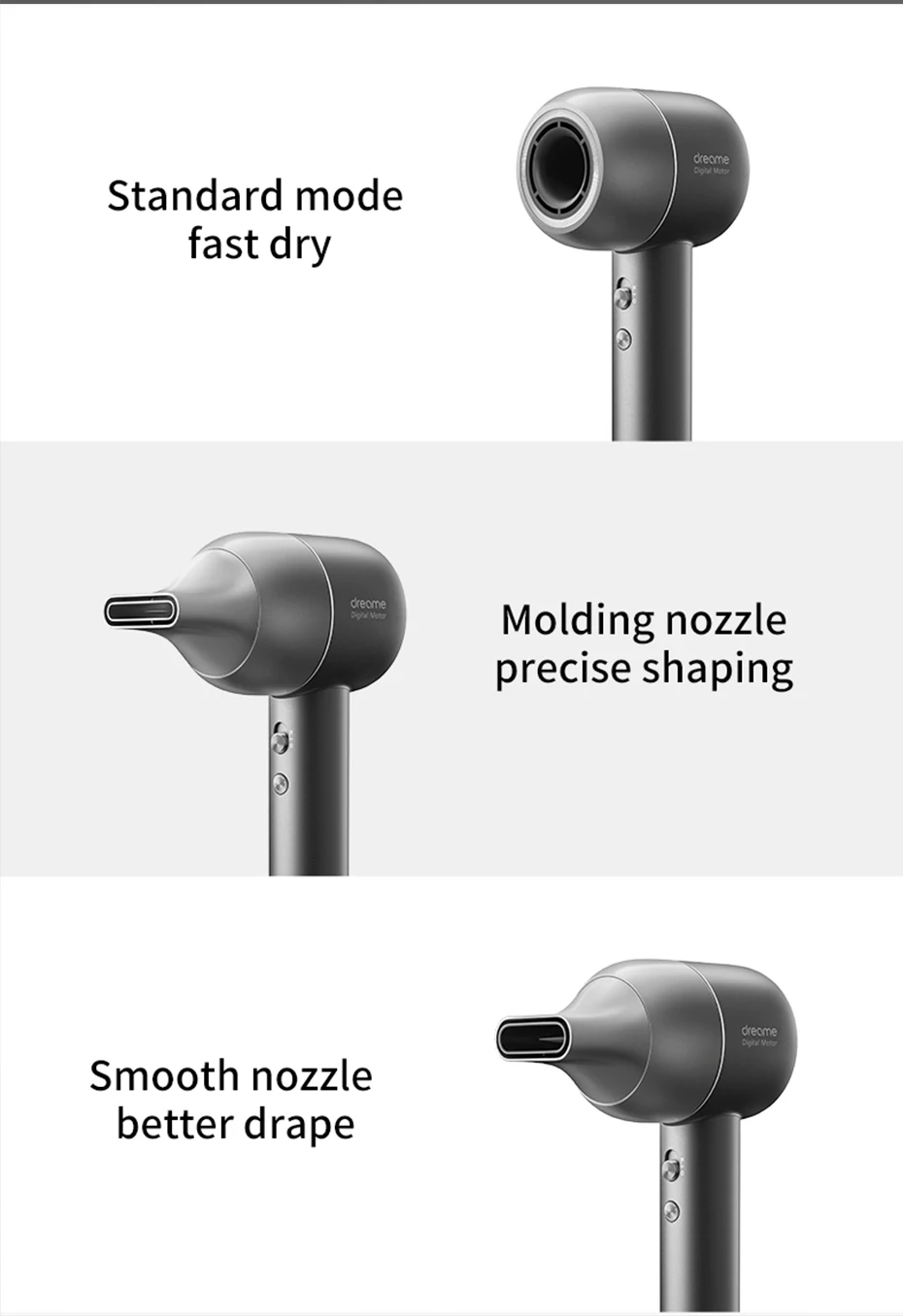 Столкновения между аэродинамической эстетикой и модой Удар в течение 3 минут, Изысканный 1 полный день Стандартный режим, быстрая сушка Формовочная насадка, Точная форма Гладкая насадка, лучше драпировка