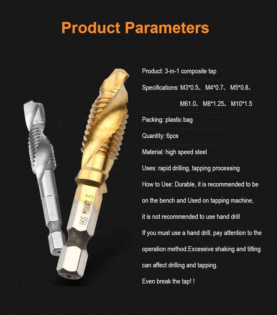 ●Прочный, рекомендуется использовать на скамейке для сверления и нарезания резьбы. Не рекомендуется использовать ручную дрель. Если вы должны использовать ручную дрель, обратите внимание на метод работы. Чрезмерное Тряска и наклон повлияют на сверление и постукивание, и даже сломать кран!