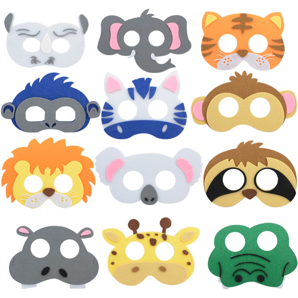 -Маски представлены разными персонажами, включая льва, жирафа, зебры, обезьяны, крокодила, тигра, ленивого, обезьяны, бегемота, коалы, слона, носорога и 3 коров. Выберите свой любимый!