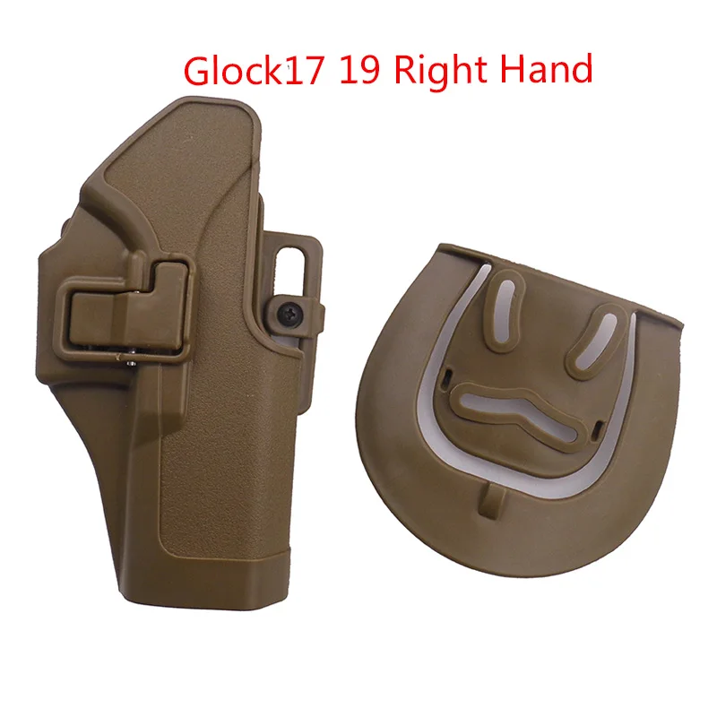Тема: поясная кобура Подходит для пистолета: Glock 17 19 Colt 1911 M9 M92 P226 Передача: левая/правая рука Цвет: песочный/черный/зеленый Вес: 200 г Материал: полиуретан высокой плотности