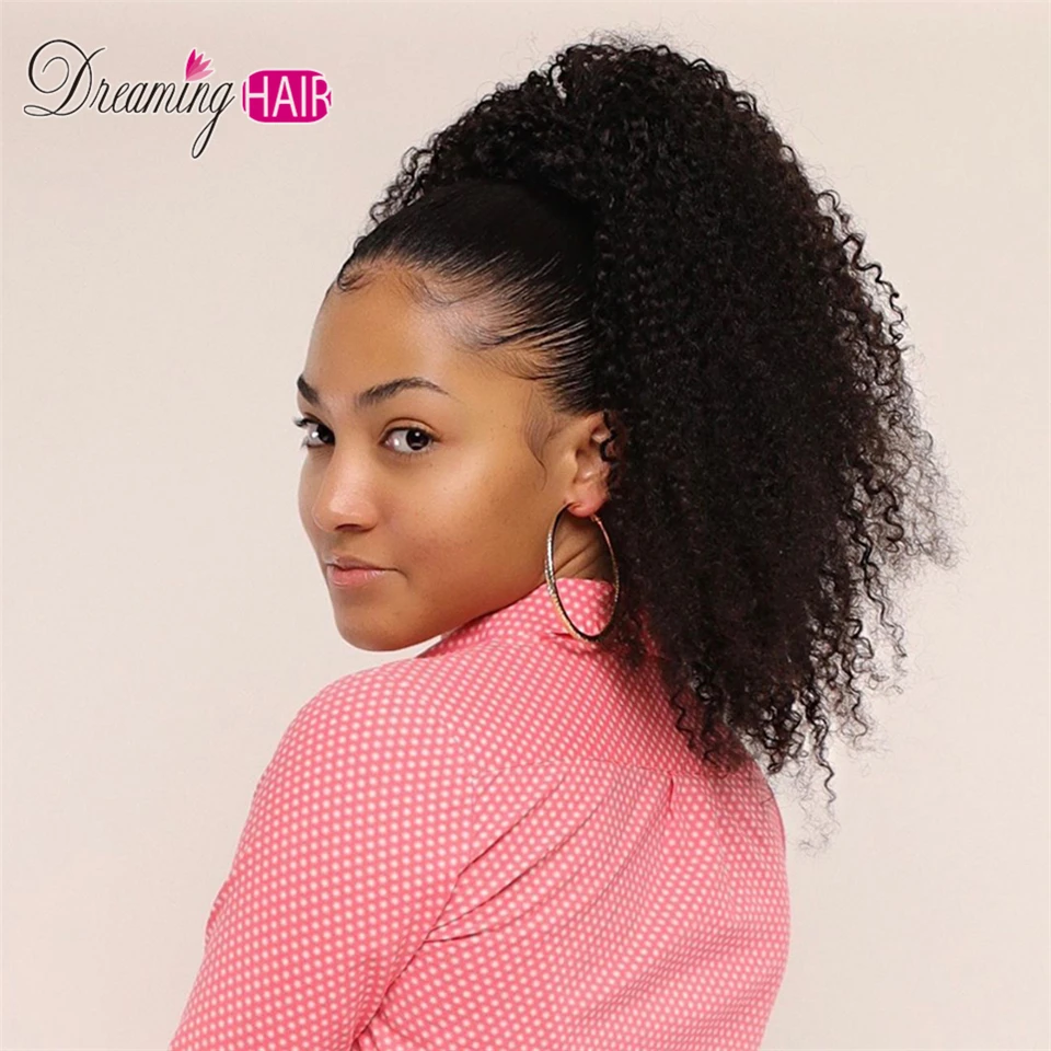 Кудрявые кудрявые человеческие волосы для наращивания на шнурке конский хвост афро волосы натуральные волосы на клипсах конский хвост для женщин черные бразильские волосы Remy