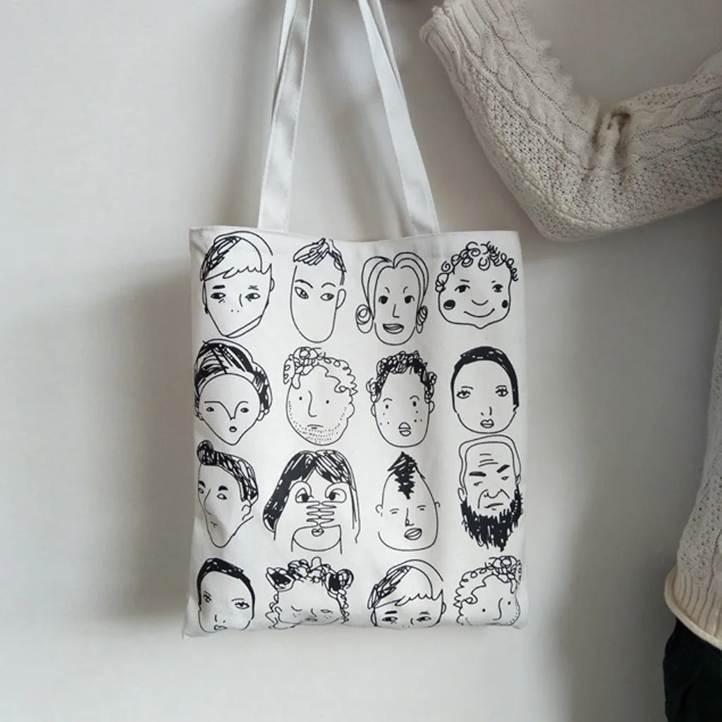 Модные женские холщовые художественные многоразовые сумки через плечо с ручками хозяйственные сумки