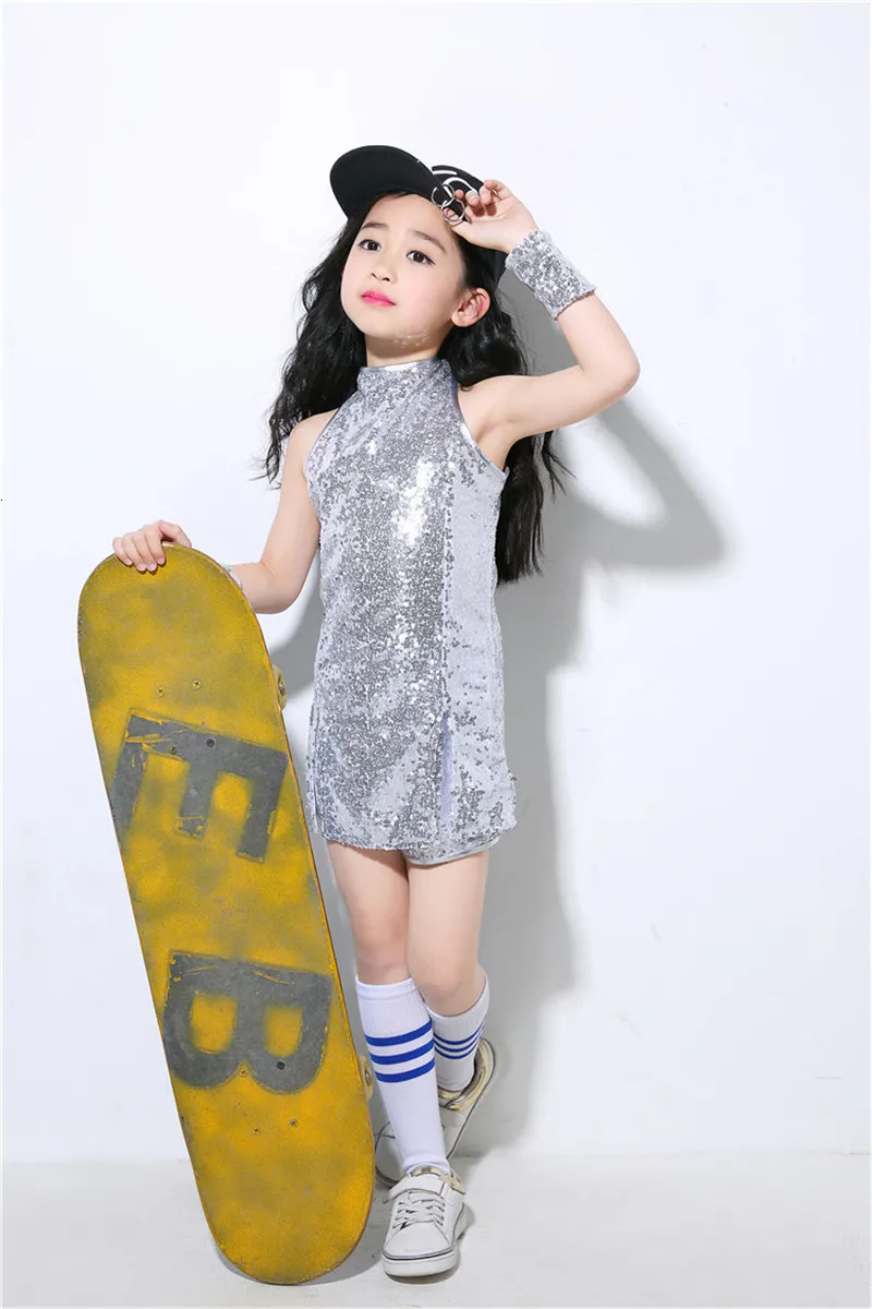 Детский костюм в стиле хип-хоп с блестками; Детский костюм для шоу; Танцевальная одежда для джазовых танцев; Современная Одежда для танцев