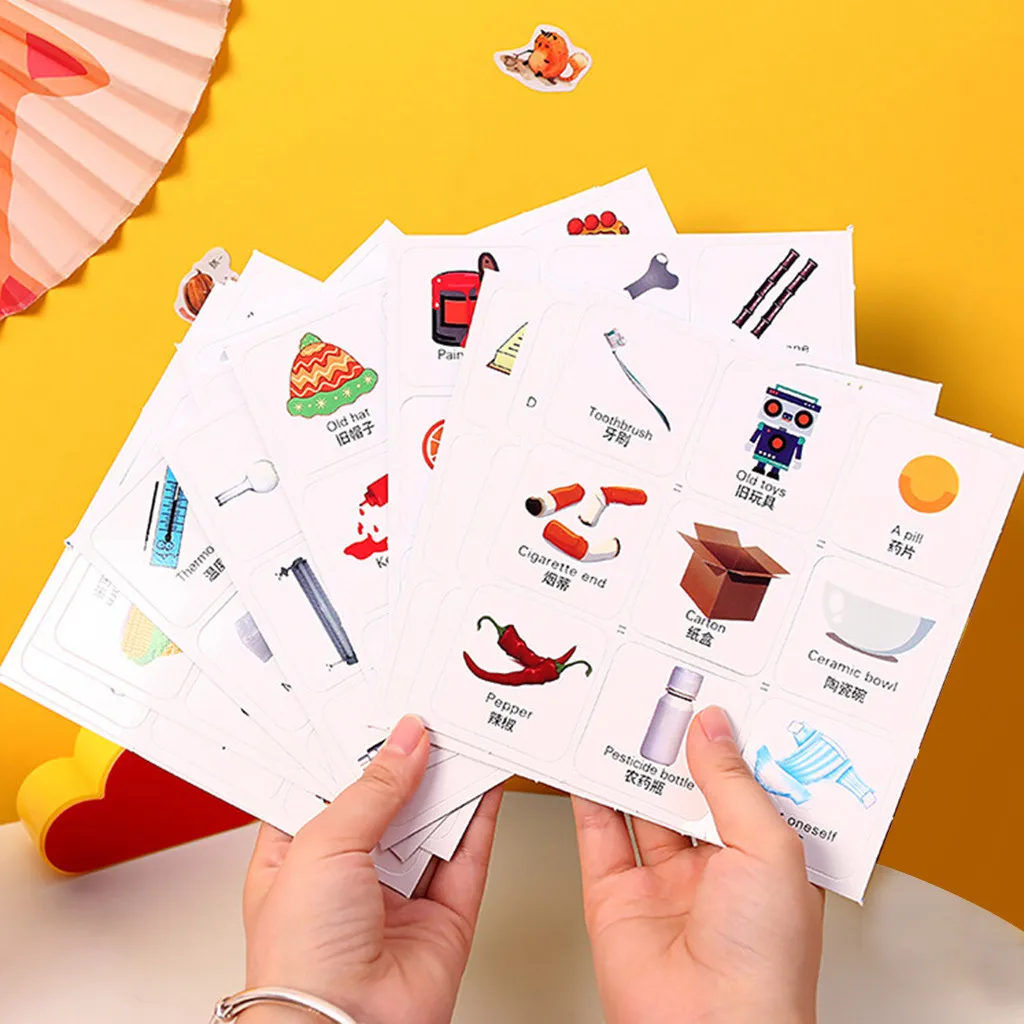 Продукт содержит 100PC карт, чтобы помочь детям или студентам научиться сортировке отходов и развивать хорошие привычки.