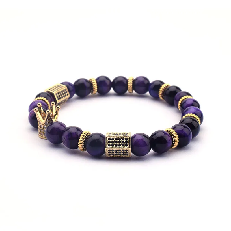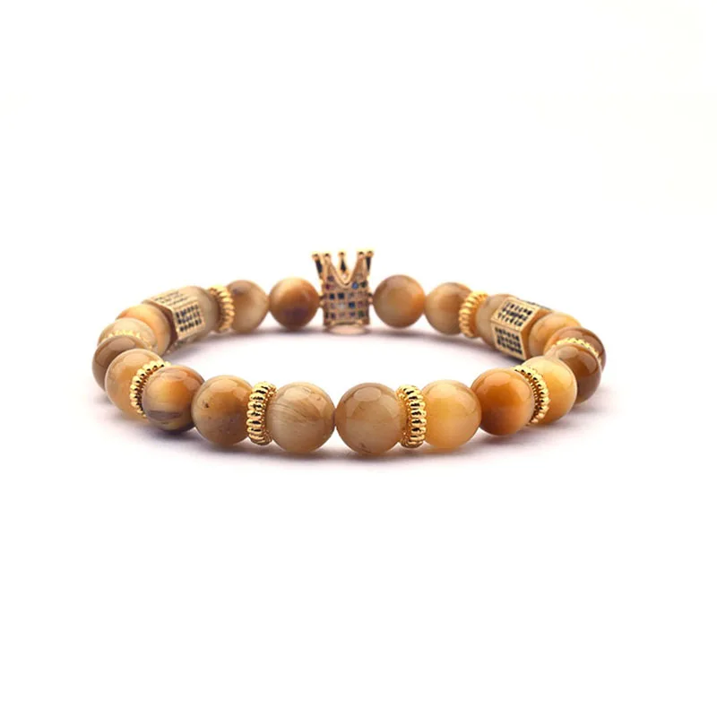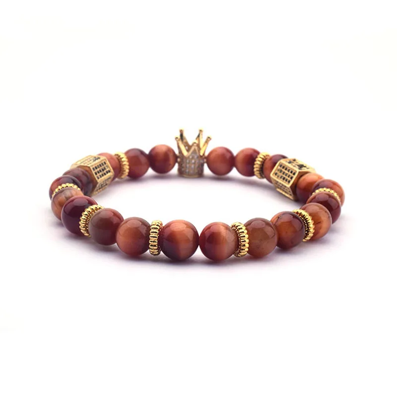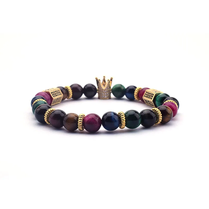 Material:8mm kinds of tiger eye stone and copper crown,pipe with zirconia