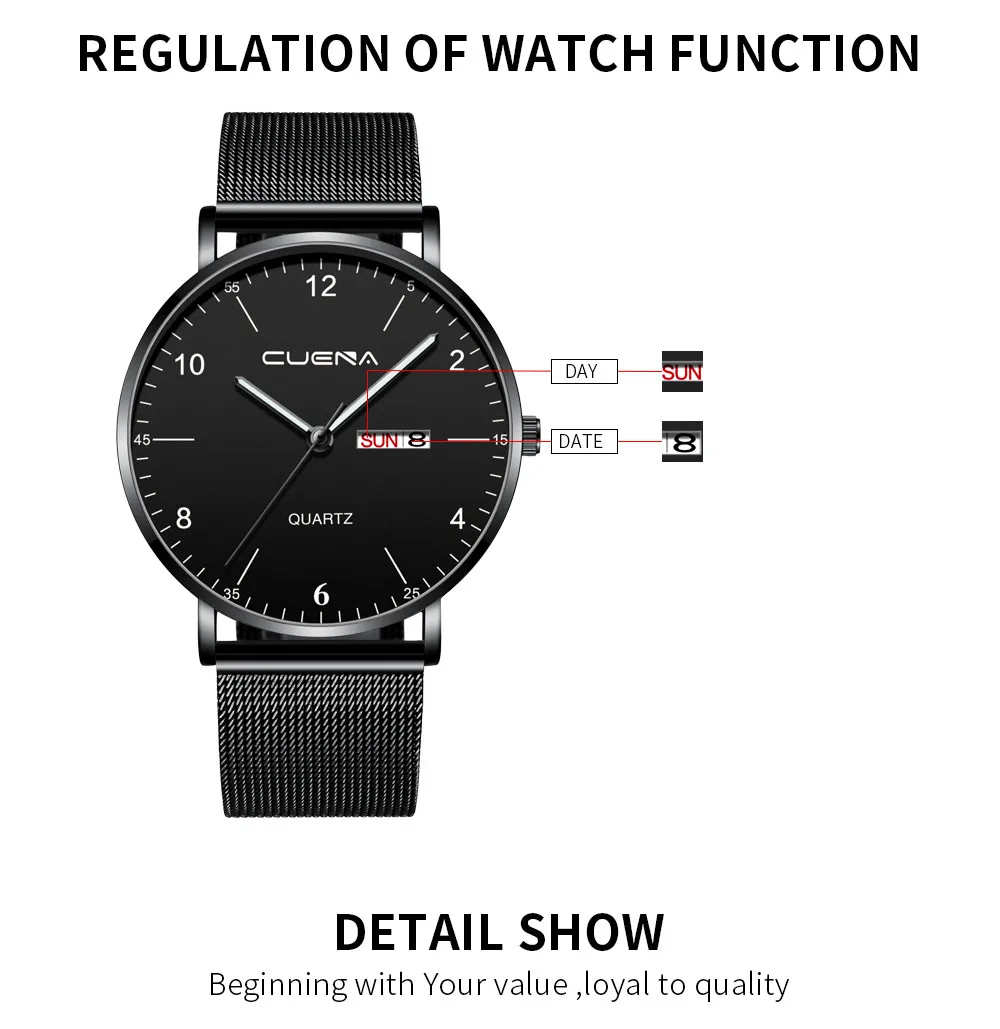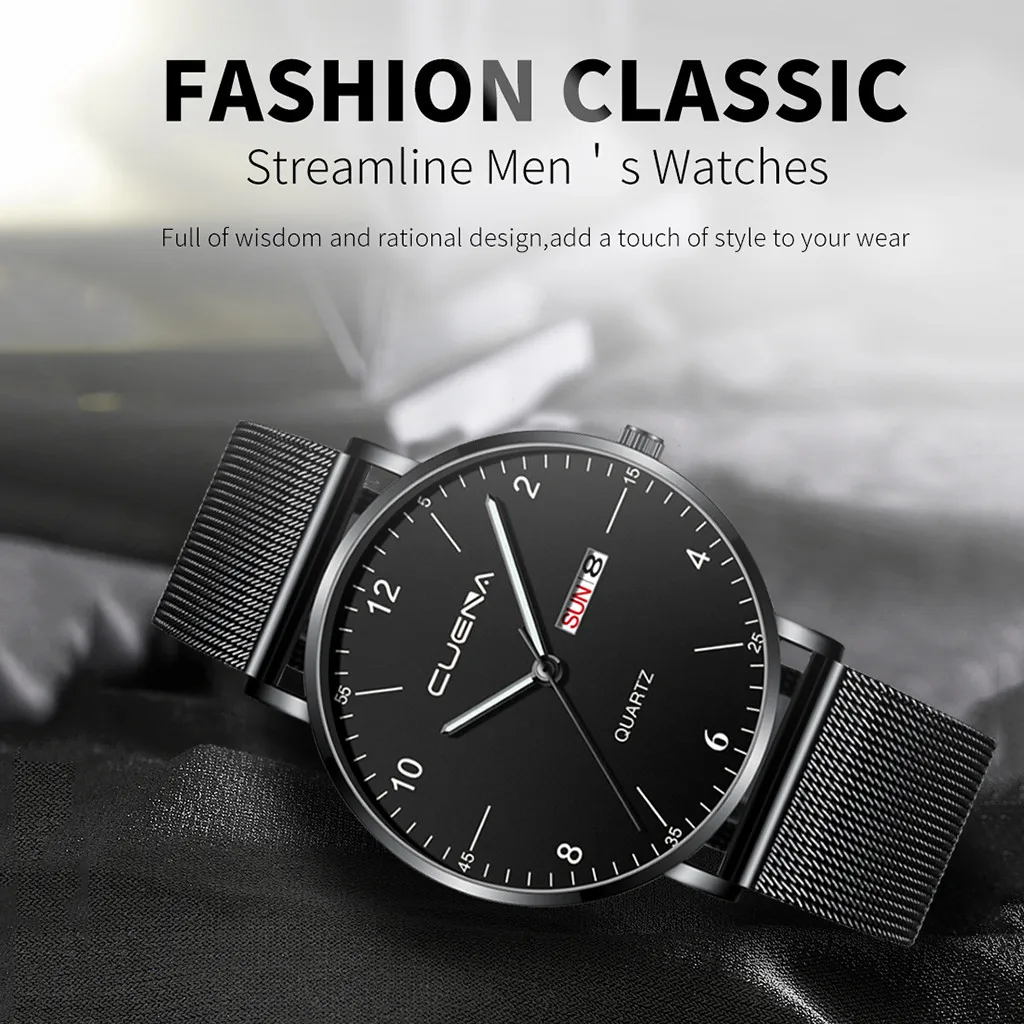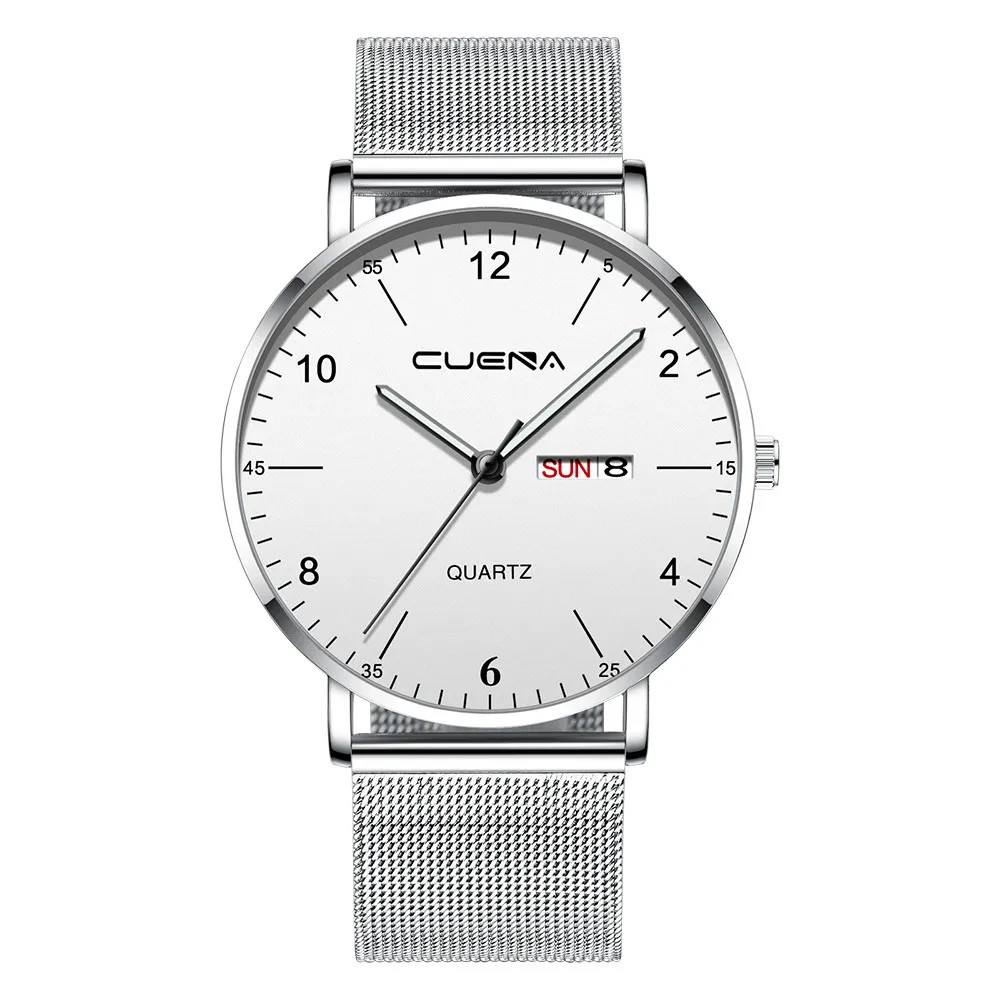 Новое поступление мужские магнитные часы из нержавеющей стали с календарем Простые повседневные кварцевые часы Простой Календарь Классический Взрыв #10