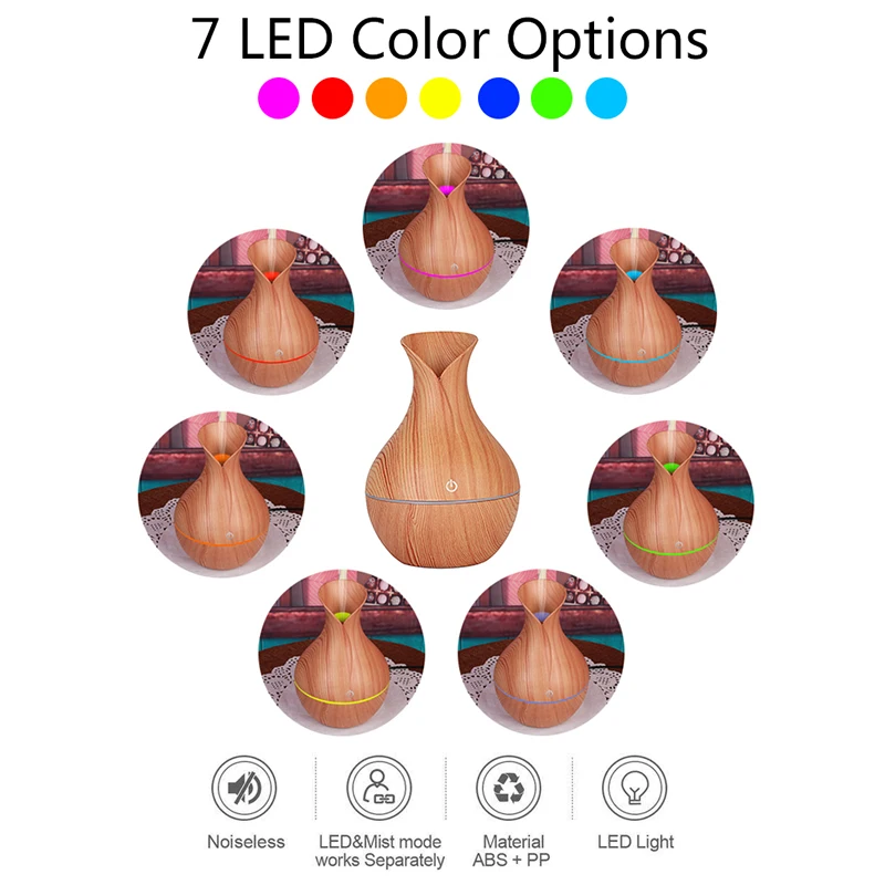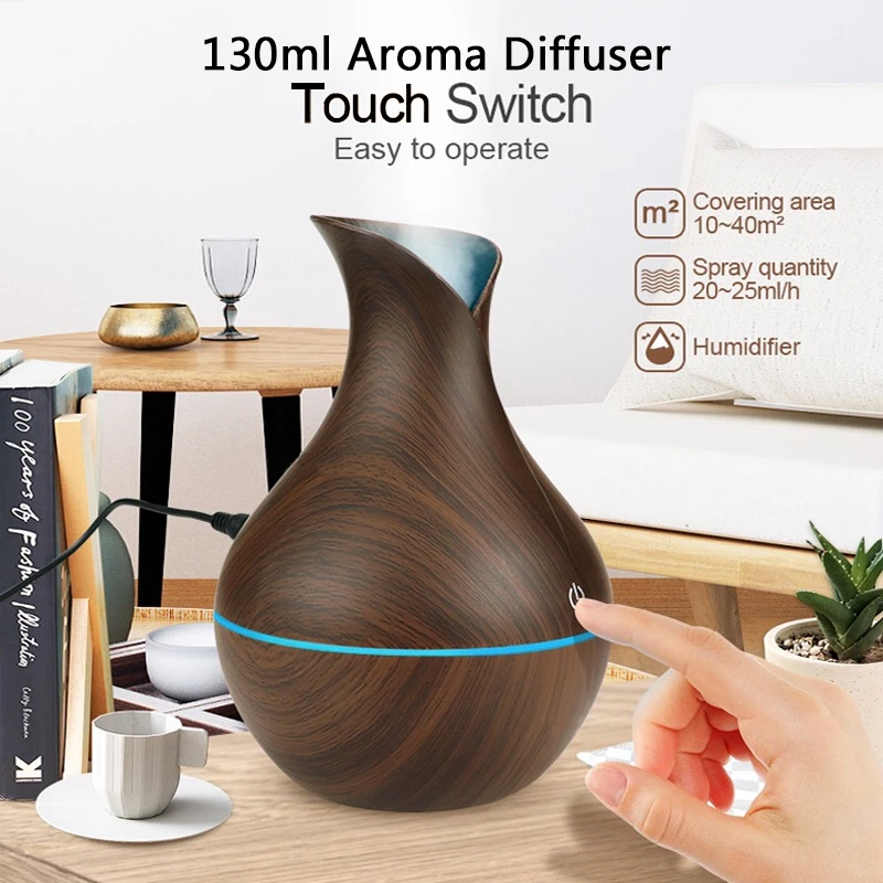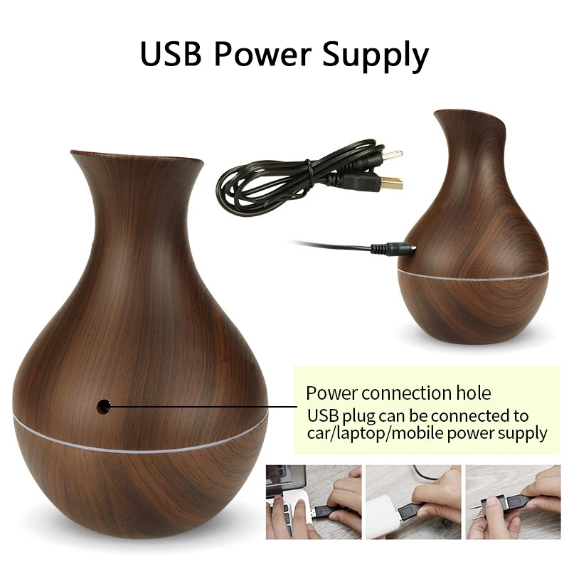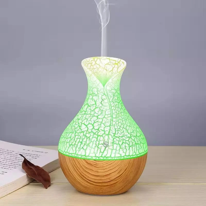 130 мл USB Маленькая ваза, Электрический увлажнитель, арома-диффузор, ультразвуковой увлажнитель воздуха с текстурой древесины, 7 цветов, светодиодный светильник для дома