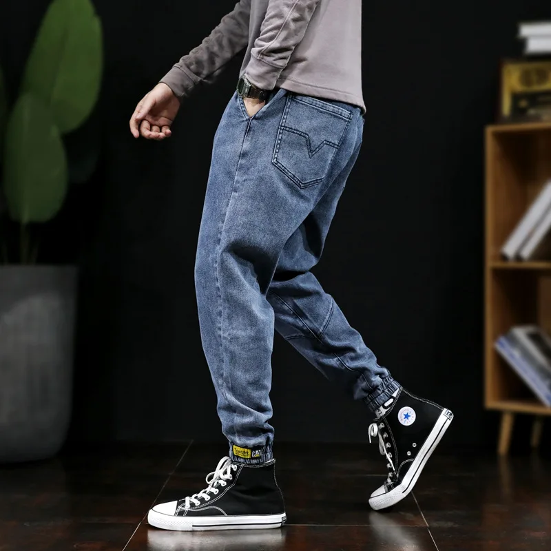 Джинсы мужские стрейчевые легкие брюки из денима прямые зауженные хлопковые