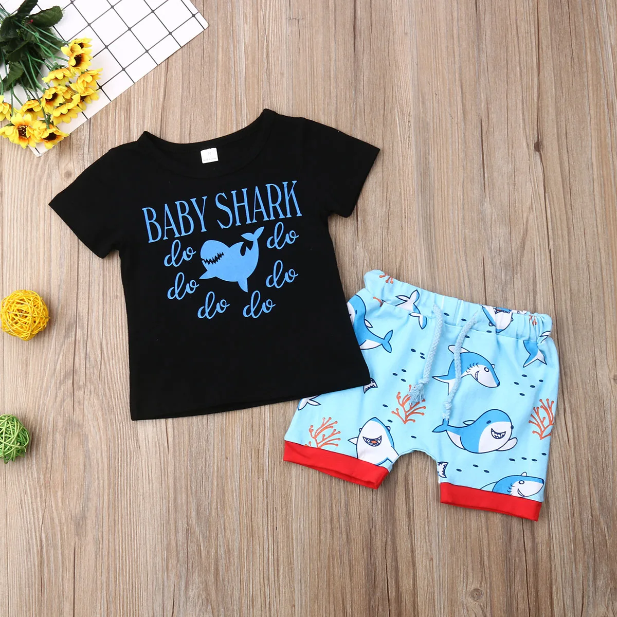 Toddler Kids Baby Boys Shark Print Top Pant 2Pcs Set !! High quality and Brand new 100% Main Color: AS The Picture New in Fashion Material: Cotton BlendAttention plz: If your kid is chubby, we recomend choosing a larger size, thanks. Please kindly refer to your kids actual height and the size chart before buying/bidding. Thanks. Package included: 1x Tops+1x Pants Size Chart: