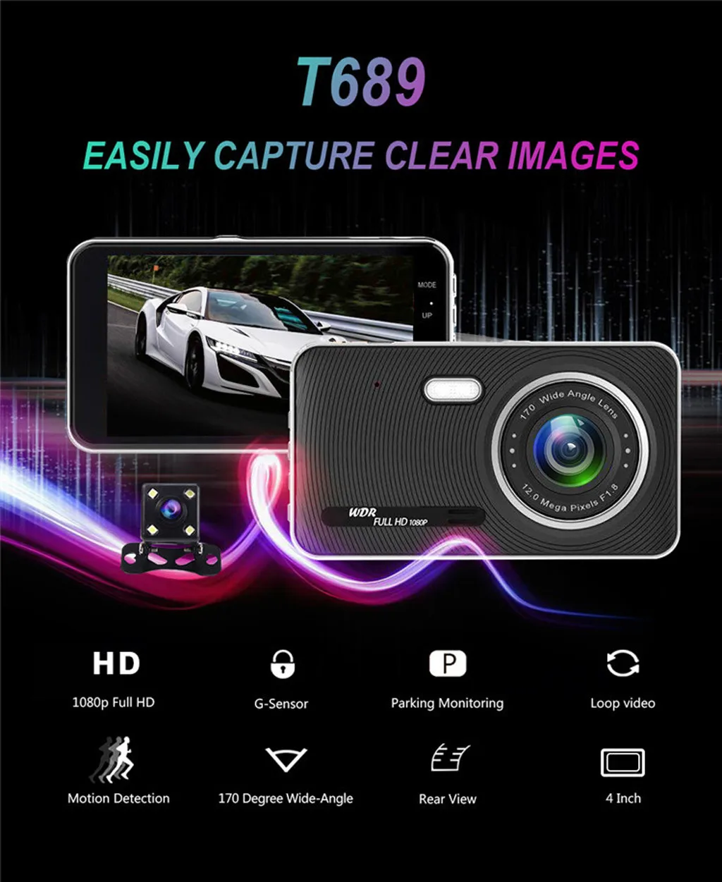 Видеорегистратор 1080P HD Автомобильная записывающая камера Dash Авто транспортное средство ночного видения