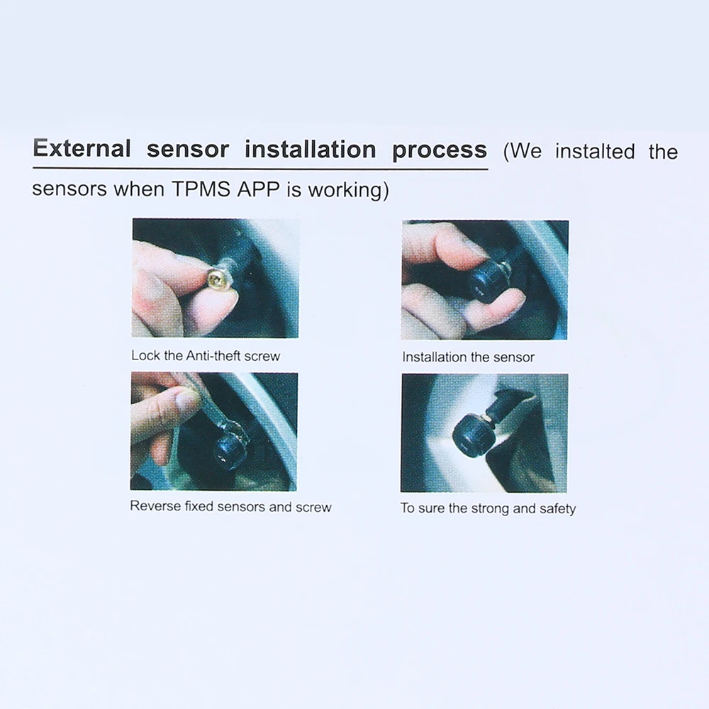 Особенности: Легко устанавливается. Питание от USB, проводов не требуется. Можно положить в автомобильную перчаточную коробку. Эта система контроля давления в шинах содержит монитор и четыре датчика. При использовании внешнего датчика датчик использует противоугонную гайку, непосредственно закрепленную в оригинальном автомобильном газовом сопле. Датчик измерения давления и температуры в шинах и отправка информации о шинах в приемник TPMS, приемник отправляет дату на DVD через порт USB. Когда давление в шинах низкое или протекает и высокая температура, DVD имеет Пробивной звук и светильник, чтобы напомнить водителям обратить внимание на безопасность транспортного средства.