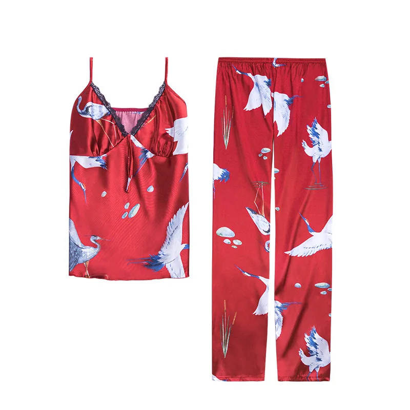 Европейский женский пижамный комплект со штанами атласная пижама на тонких