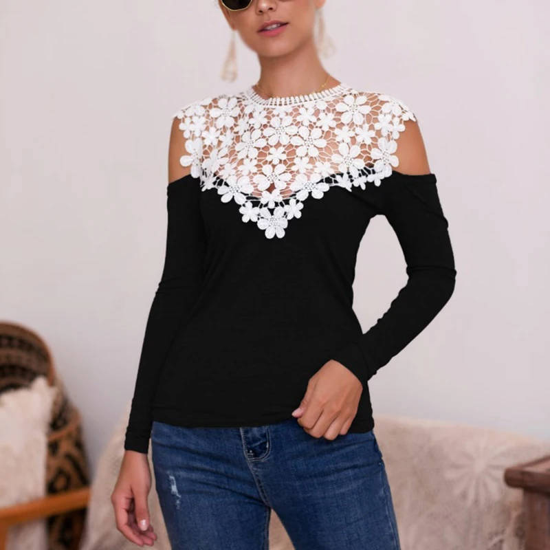 * Описание товара: женская, вышитая, кружевная, сшивная, с длинными рукавами, рубашка с вырезом, тонкая