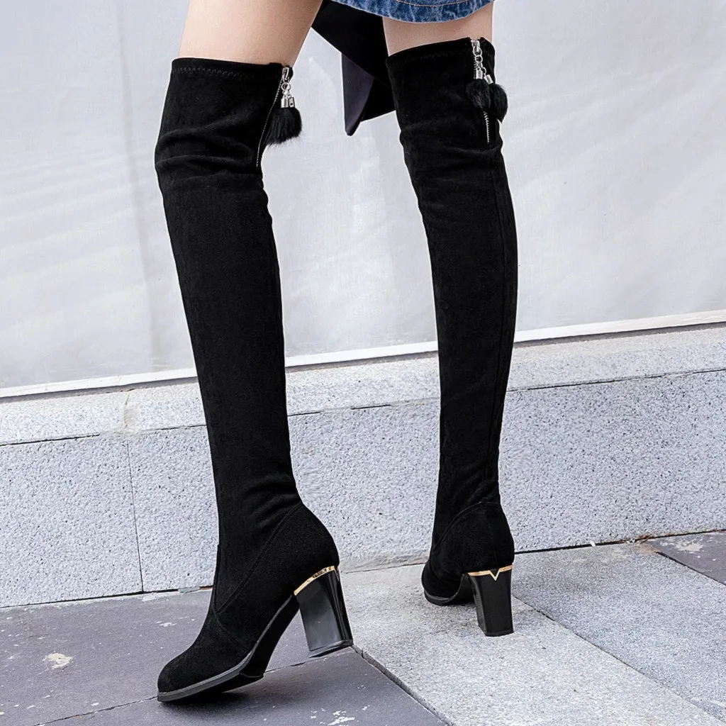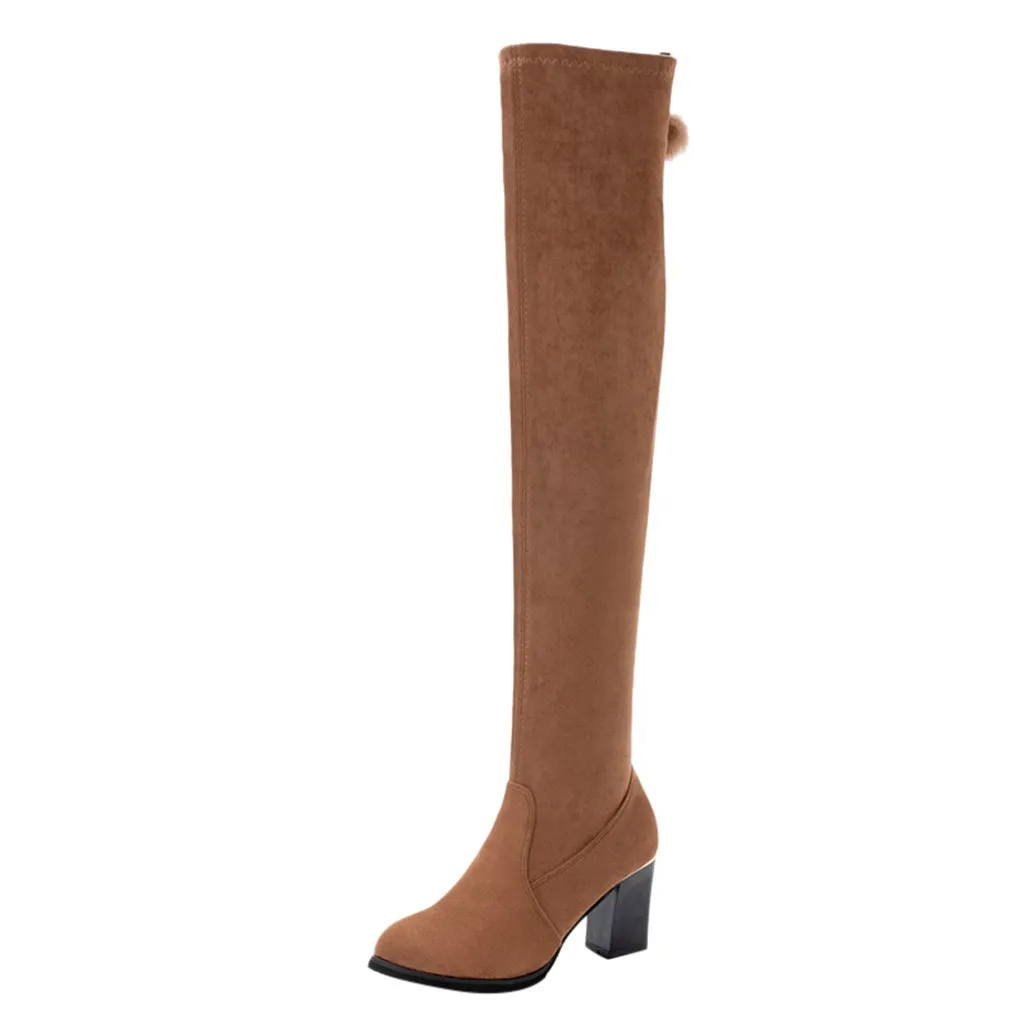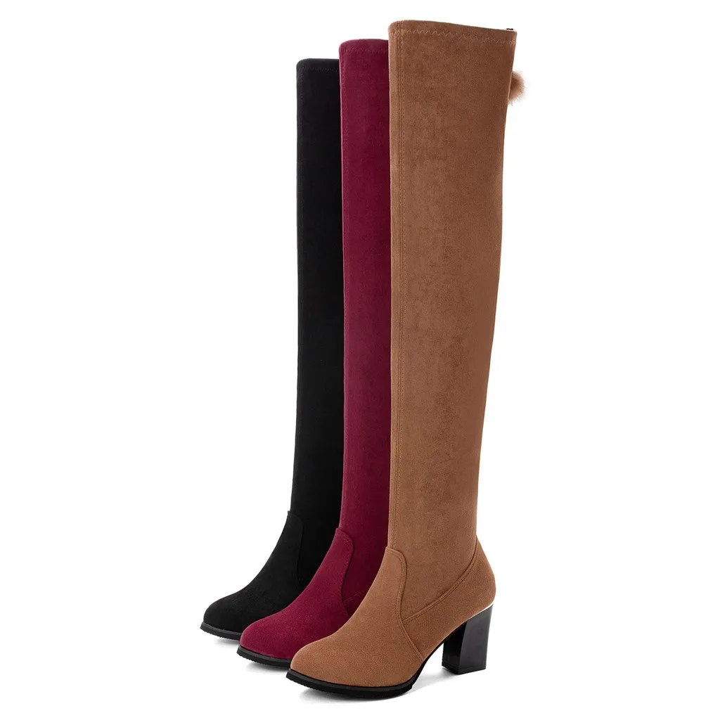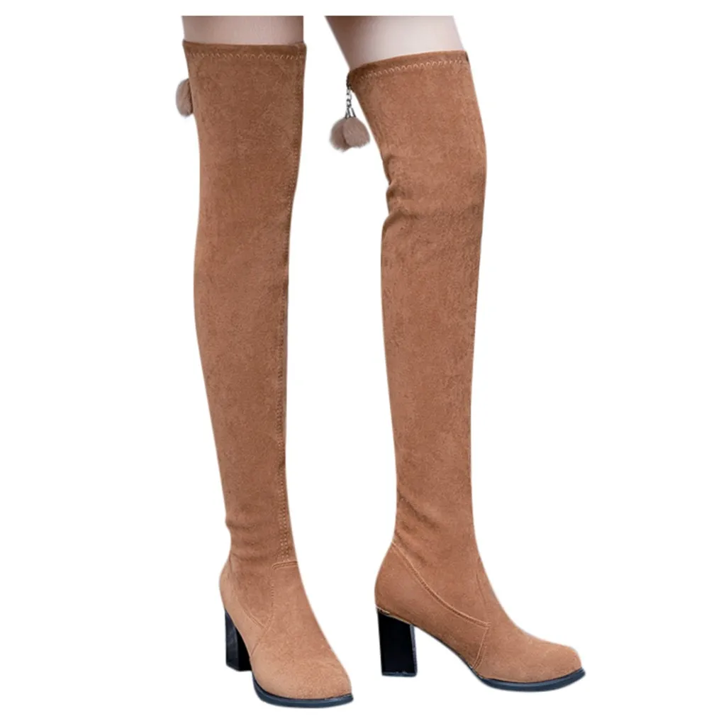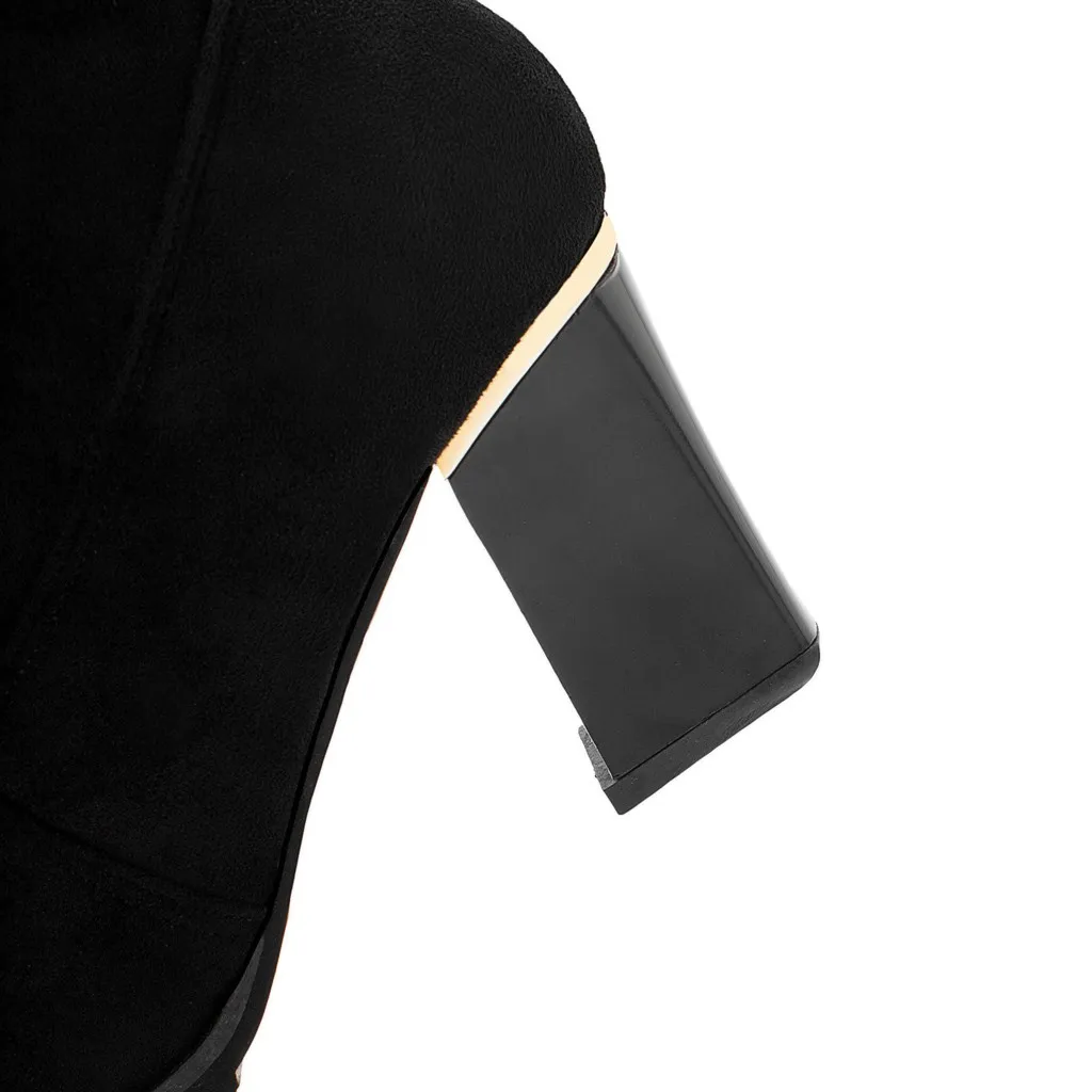 Женские ботильоны до колена на молнии сбоку; Повседневные высокие сапоги-трубы с молнией сзади на квадратном каблуке