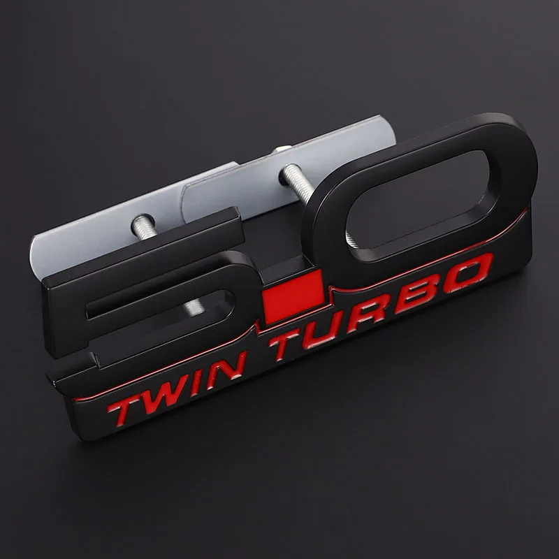 3D Metal 5.0 Twin Turbo Car Rear Trunk Emblem Sticker Decals Trim Front Hood Grill Badge for Ford Focus Mondeo Mustang Ranger