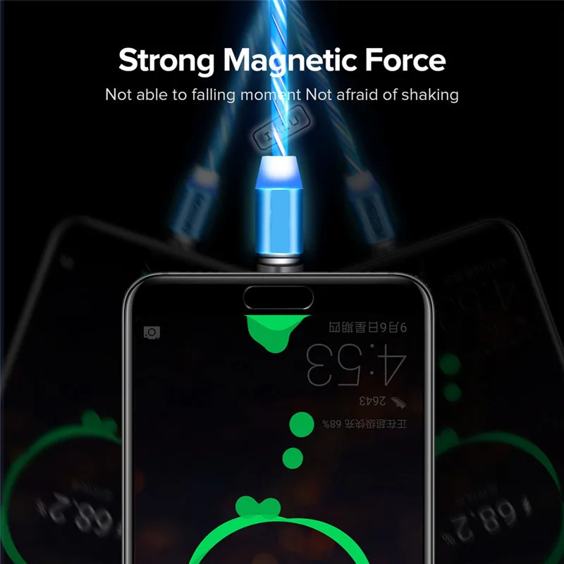 1 метр 360 ° Авто-подключение круглый светодиодный индикатор зарядки Магнитный кабельДля Micro-USB для iphone для type C