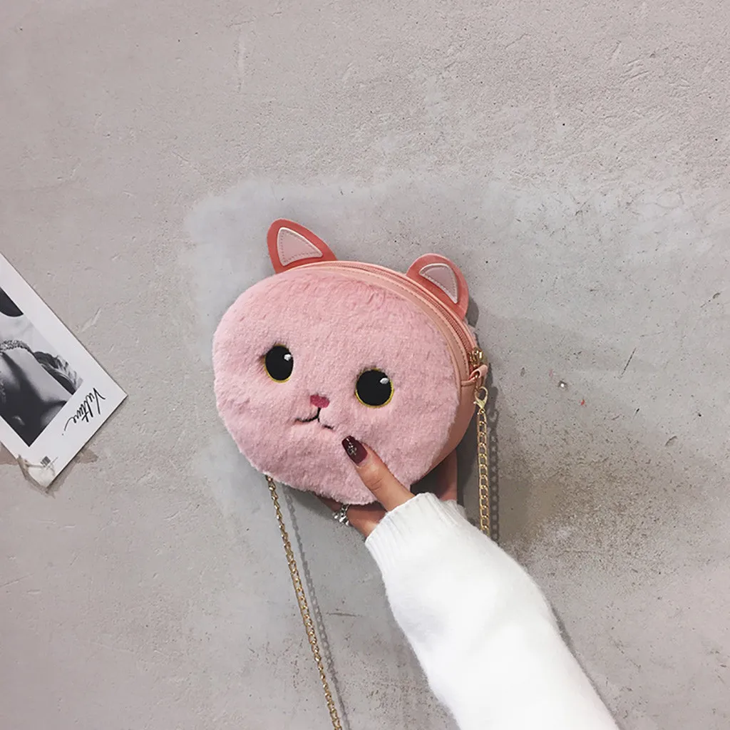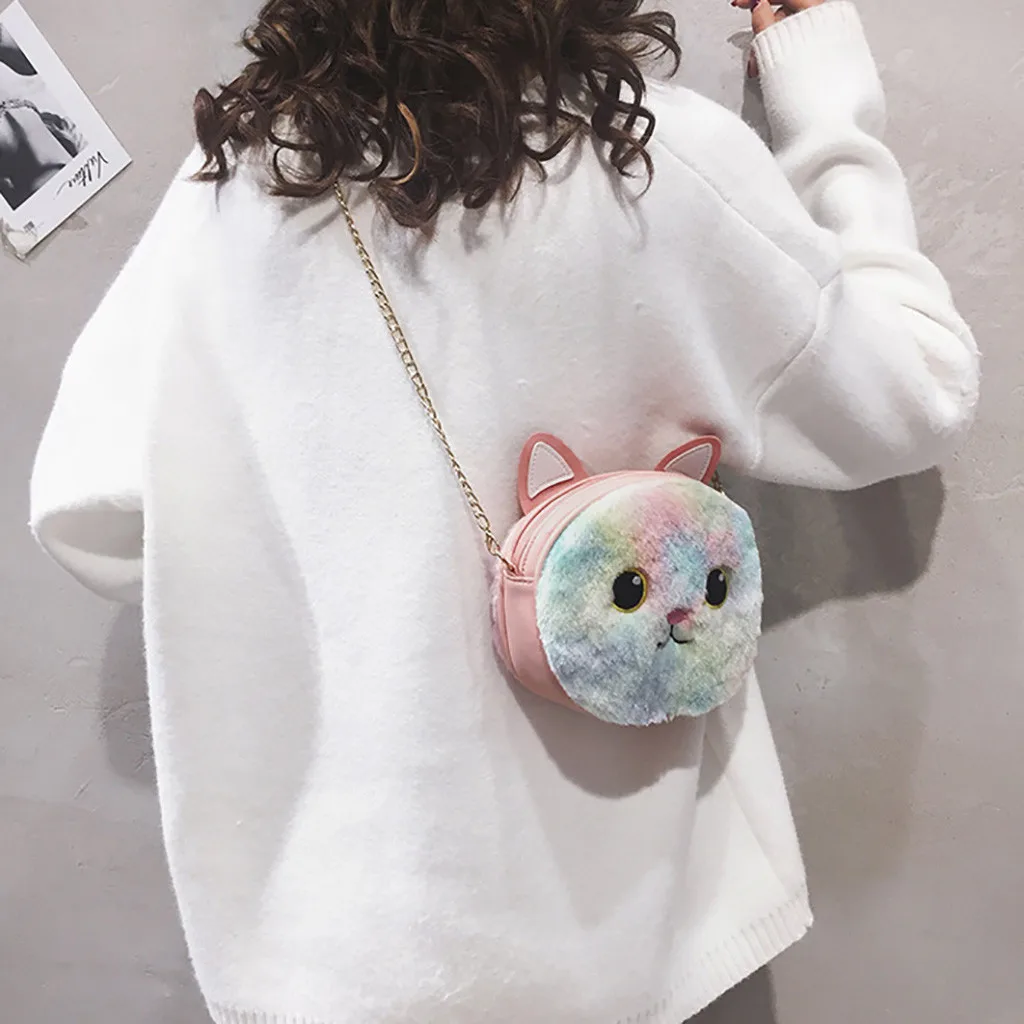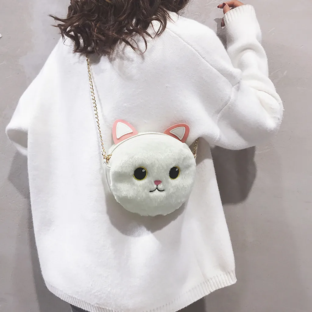Женская модная плюшевая сумка с кошкой, портмоне, сумка через плечо, повседневные сумки
