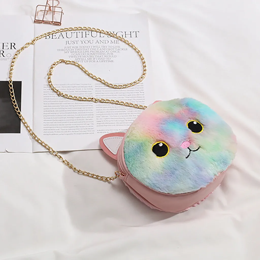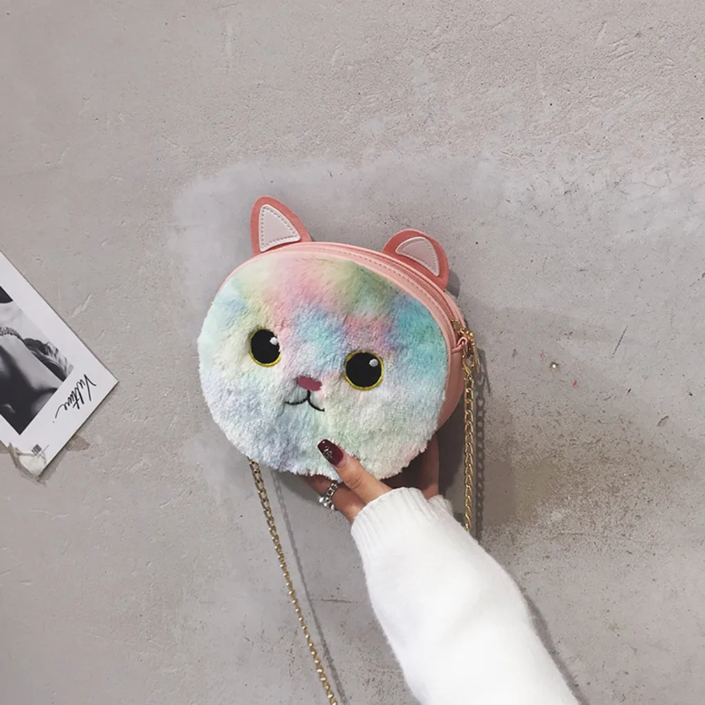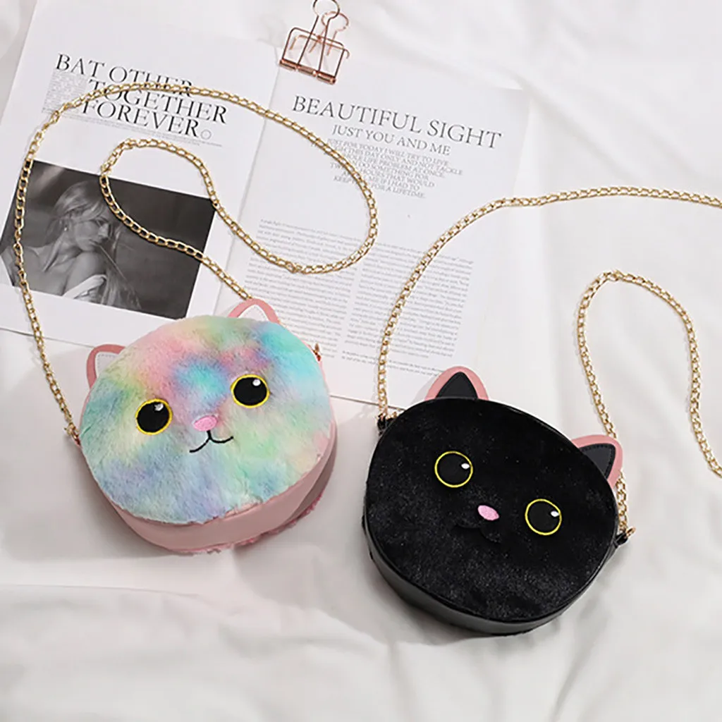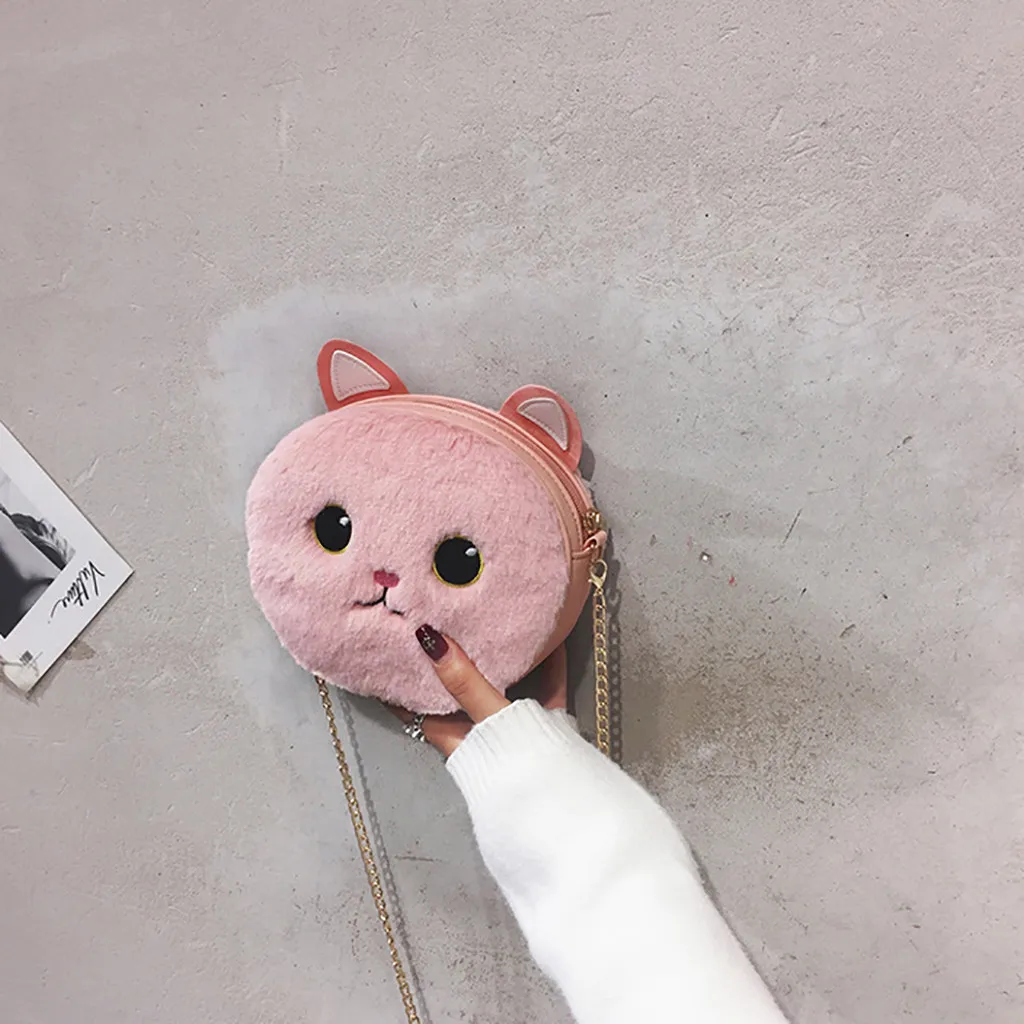 Женская модная плюшевая сумка с кошкой, портмоне, сумка через плечо, повседневные сумки