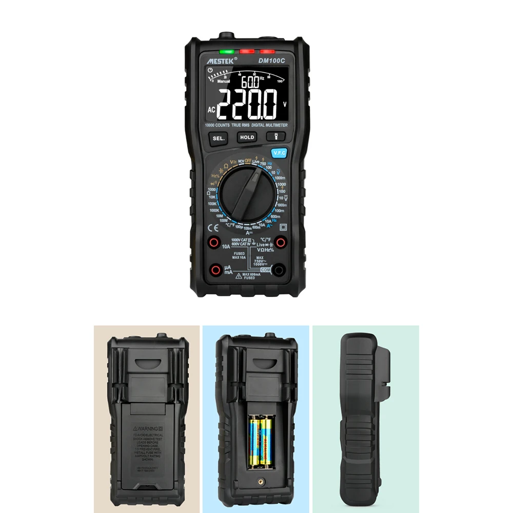 Этот инструмент представляет собой 9999 счетчик, Ручной цифровой мультиметр с истинным виртуальным значением и ручной/автоматической интеграцией. Он имеет большой, двойной, инвертированный цифровой ЖК-дисплей с имитацией баров и элементы освещения, которые легко читаются пользователям. Он имеет функции сигнализации для плавкого предохранителя, неправильной вставки измерительного щупа, защиты от перегрузки и индикации низкого напряжения батареи. Это отличный многофункциональный инструмент для профессионалов, фабрик, школ, энтузиастов или семей.