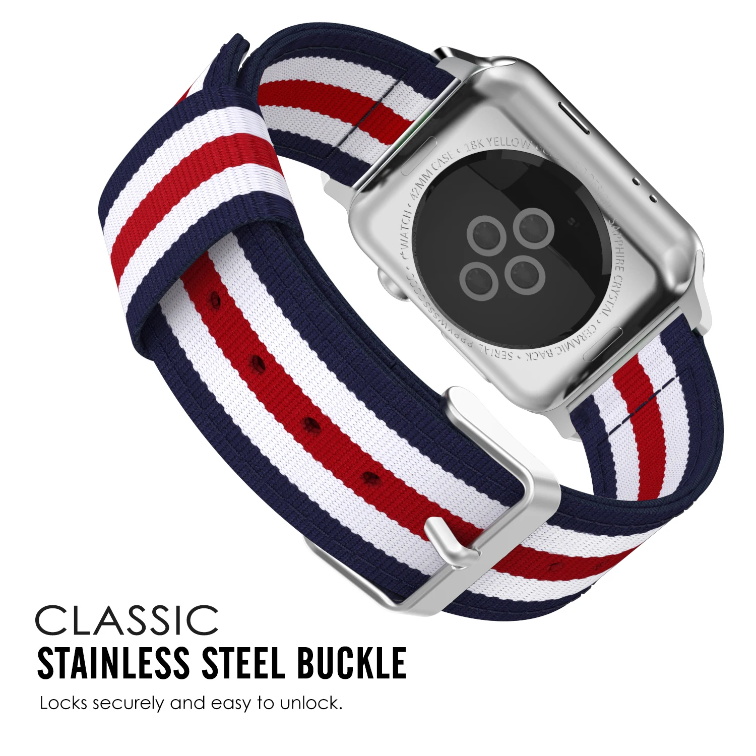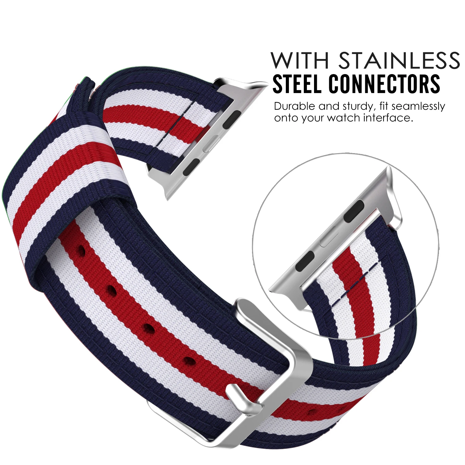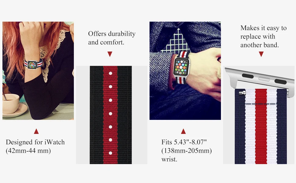Персонализированный ваш наручных часов iWatch, 42 мм 44 мм серии 4 / 3/2/1 с этой изысканной заменой нейлоновая повязка на запястье (не подойдет для 38 мм 40 мм издание). Высококачественный нейлоновый материал с умеренной мягкостью и тонкой обработкой делает его удобным в носке и прочным. Ремешок поставляется с наконечниками Apple Watch на обоих концах, которые надежно фиксируются на интерфейсе Apple Watch. Простая и прямая установка и удаление одной кнопки. БЫСТРОРАЗЪЕМНАЯ застежка-булавка Обеспечивает чистую посадку. Металлические детали изготовлены из гипоаллергенной нержавеющей стали без никеля. Подходит для запястья 5,43 "-8,07" (138 мм-205 мм) и 0,86 " (22 мм) в ширину.