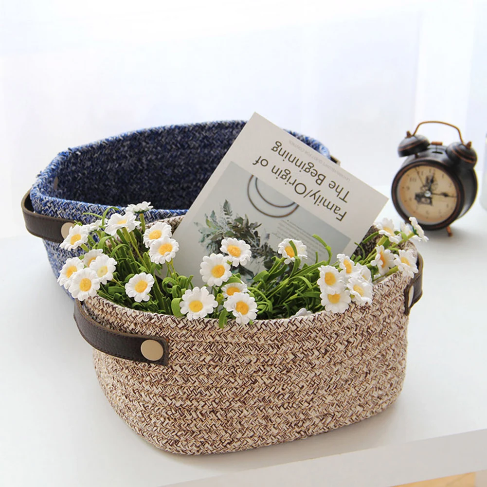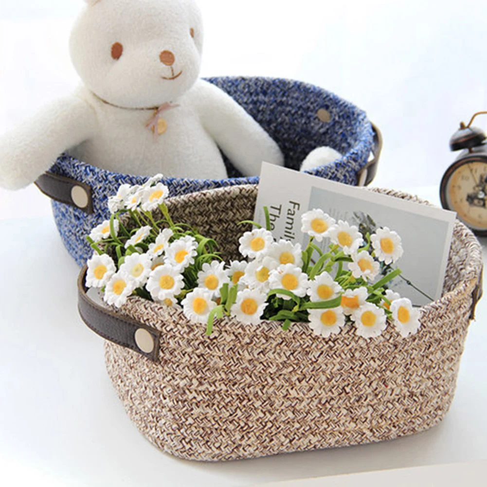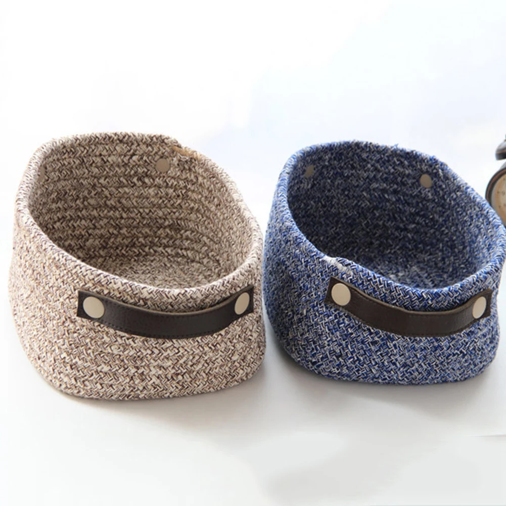 Hand Woven Cosmetics Stationery Storage Basket Box Desktop Sundries Organizer