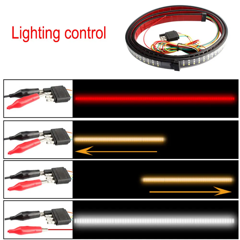 3 цвета и 5 функций. 60 ''три ряда светодиодный багажника светильник бар вытачками в углубление между вашей задней двери и бампер для во избежание дорожно-транспортных происшествий, освещает в сочетании с грузовиком тормоза светильник s, указатели поворота, обратный светильник s, бег светильник s.