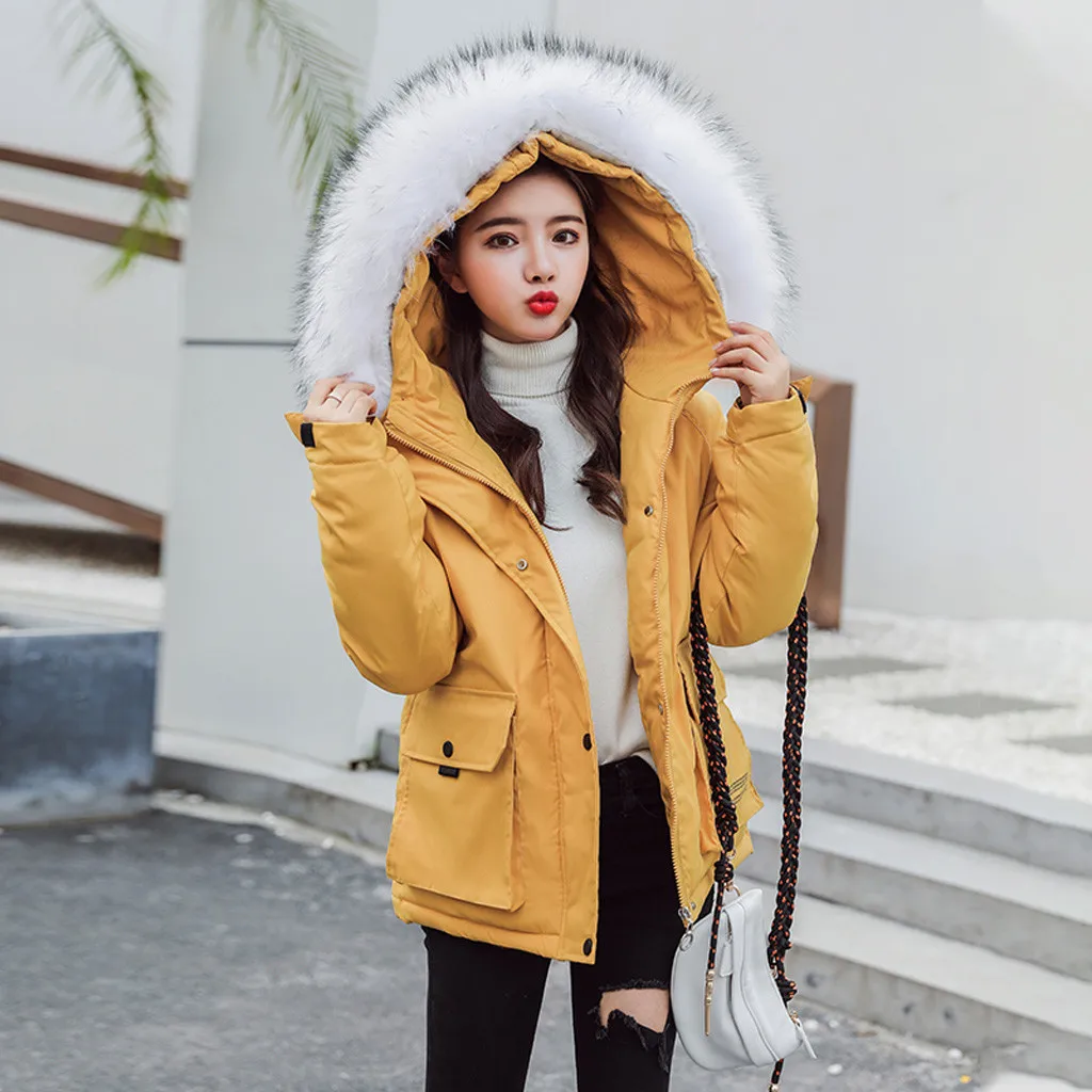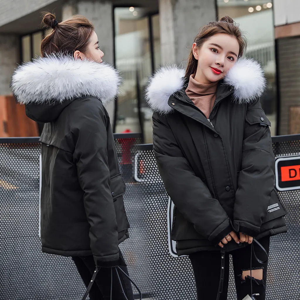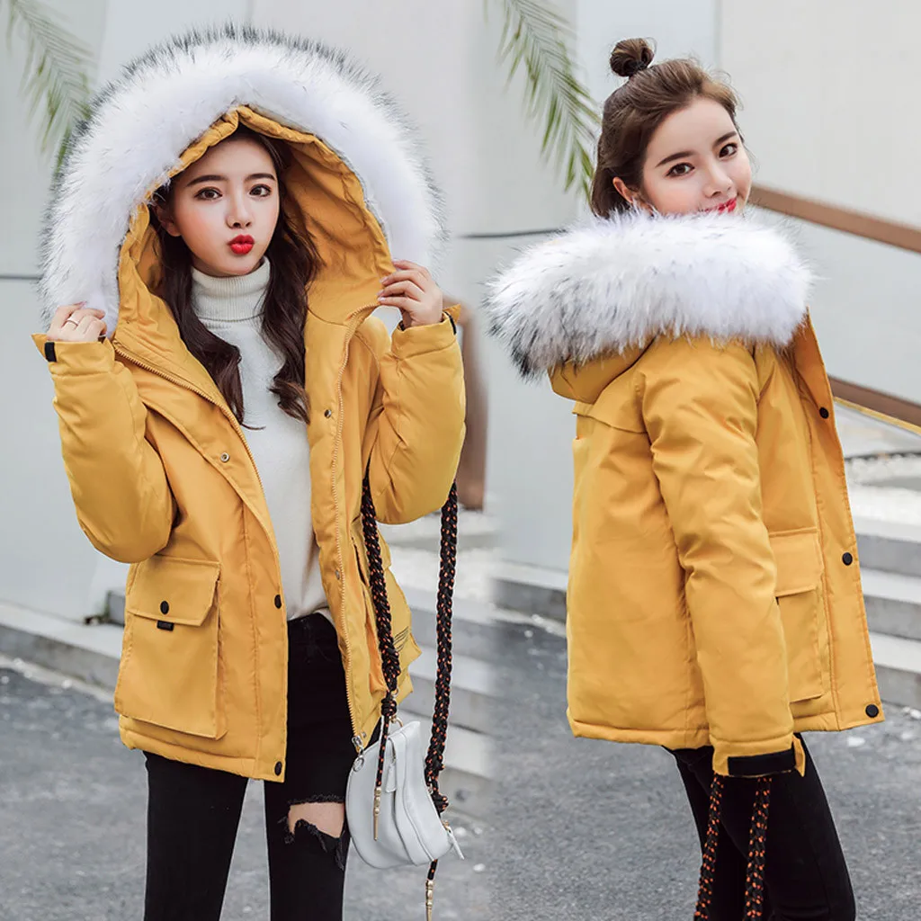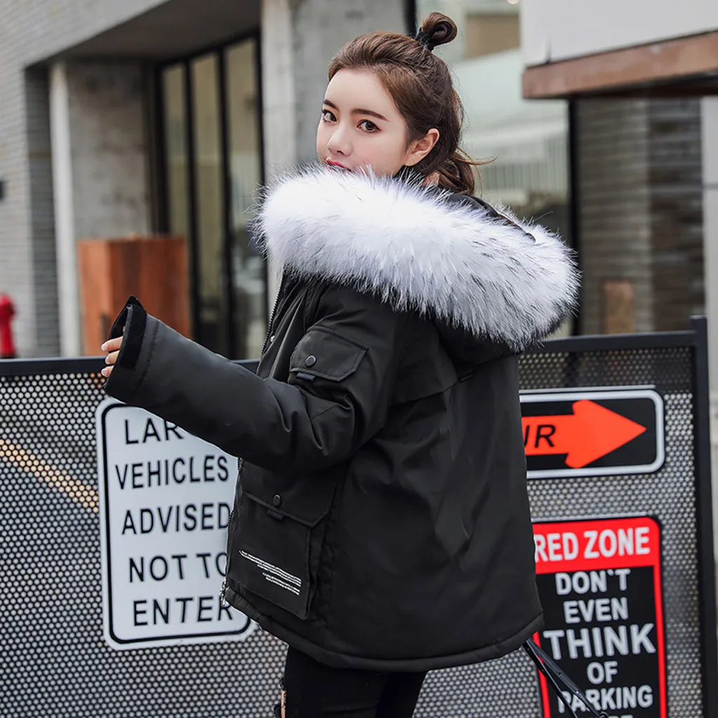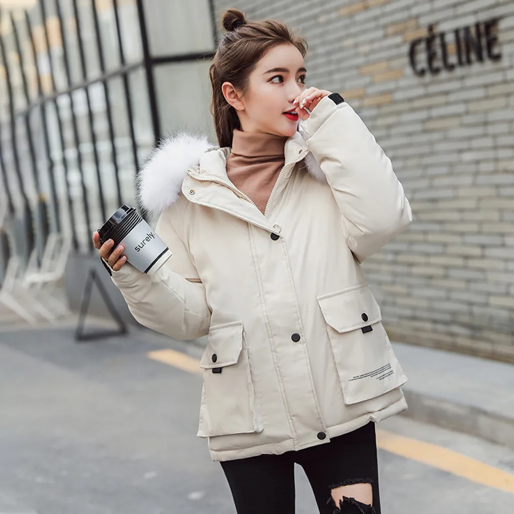Женское пуховое короткое ожерелье с хлопковой подкладкой, пальто с искусственным капюшоном, стеганая куртка, горячее пальто