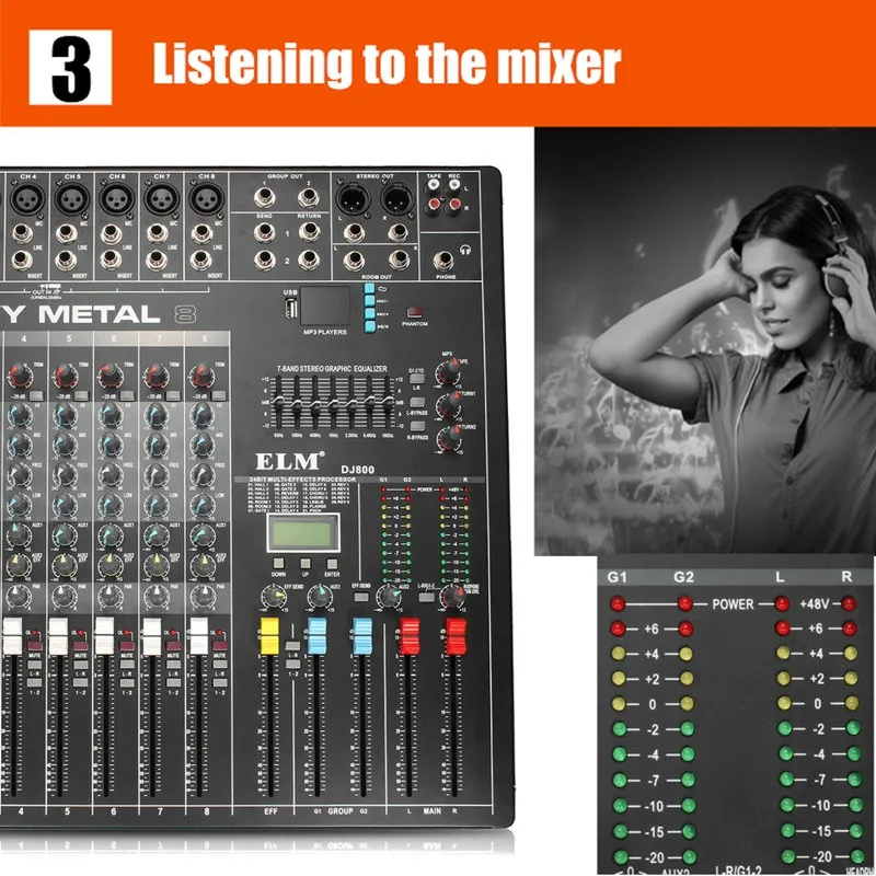 LEORY Профессиональный 4 канальный аудио DJ миксер мини звуковая микшерная консоль
