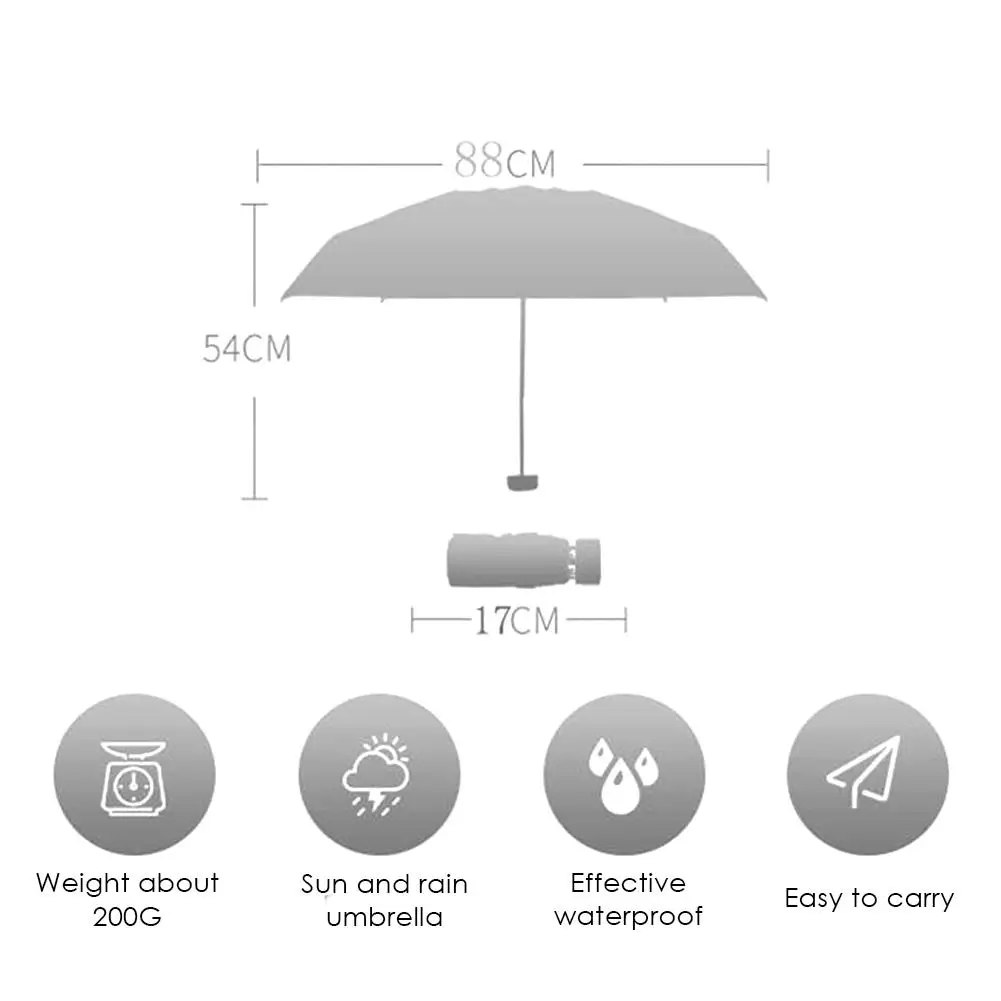 Новый карманный мини Зонт от дождя, Женские ветрозащитные прочные складные зонты от солнца 5 дюймов, портативный Солнцезащитный Женский зонт