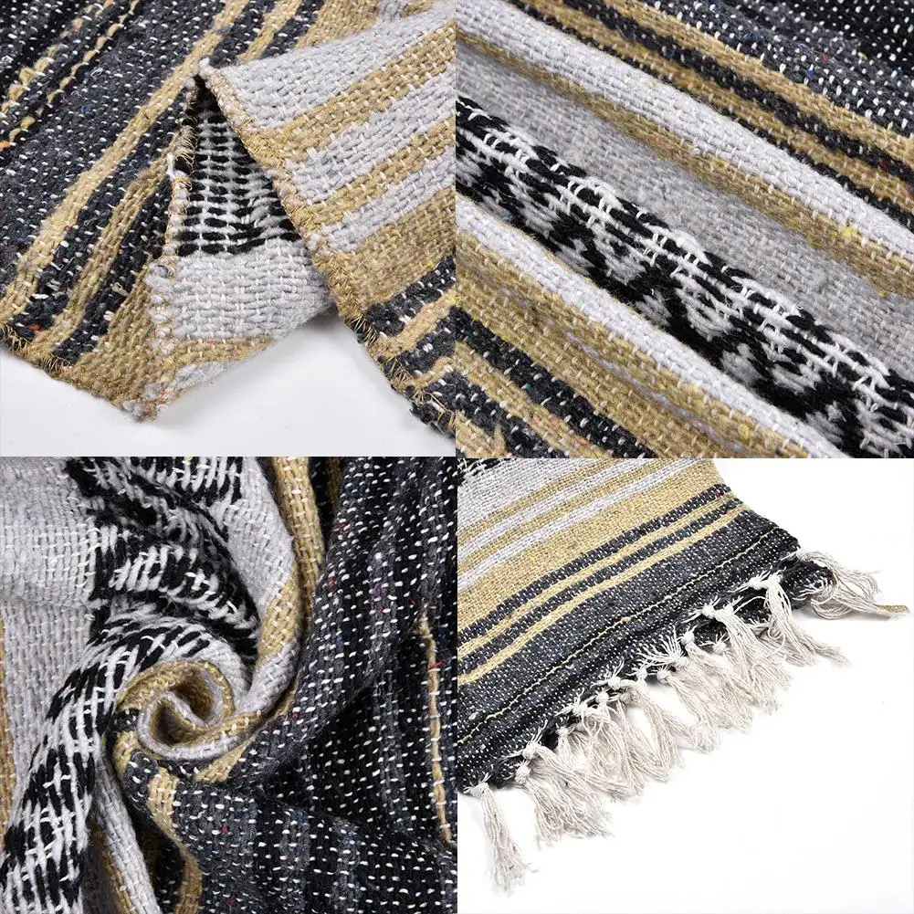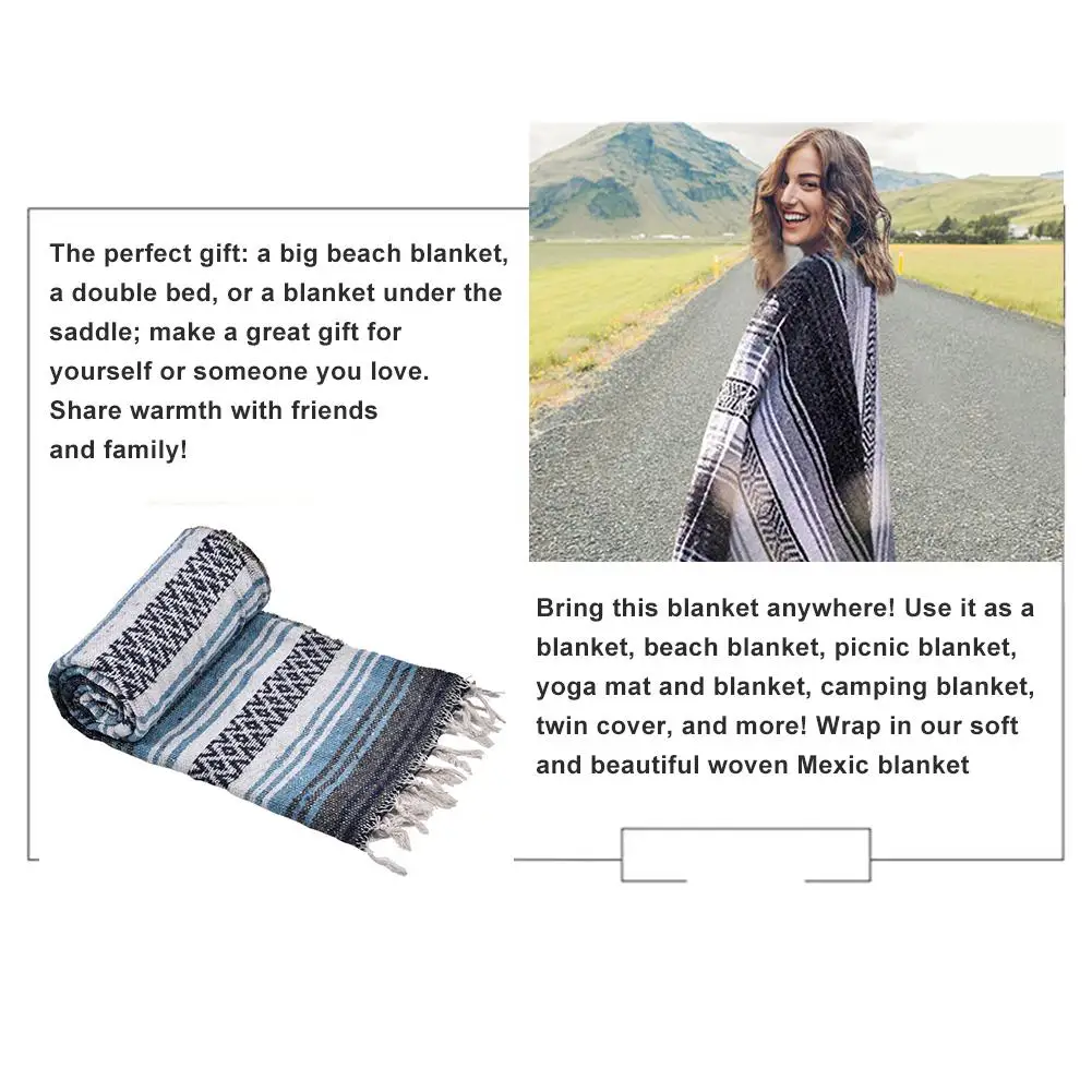 1. В помещении/на улице: возьмите это одеяло куда угодно! Используйте его как одеяло, пляжное одеяло, одеяло для пикника, коврик для йоги, Походное одеяло, покрывало и многое другое! Это мягкое и красиво сотканный мексиканское одеяло.1 * Одеяло