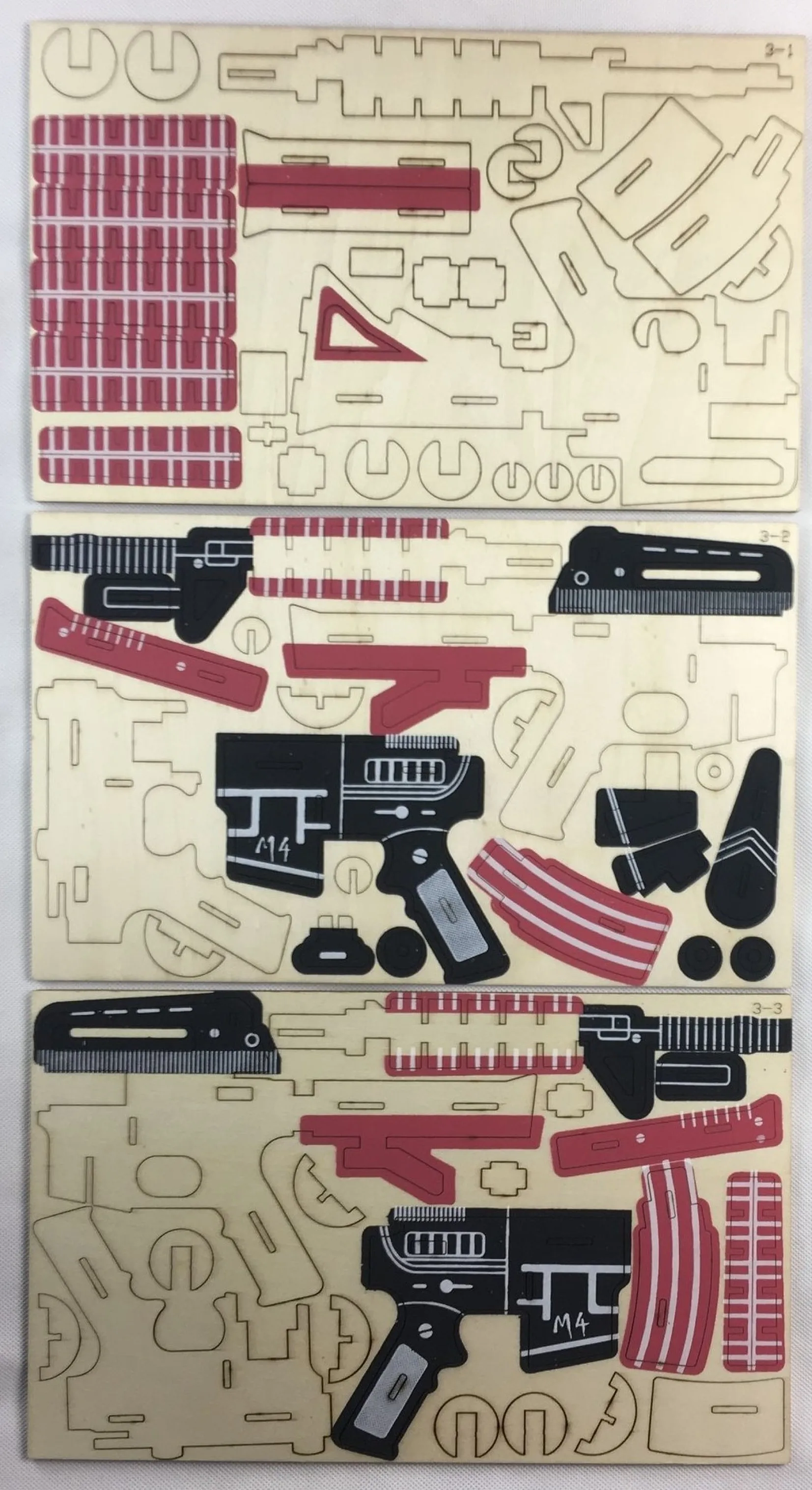 Это 100% новый бренд и высокое качество Название продукта: винтовка M4 Материал: высококачественная фанера Технология: лазерная резка Цвет: натуральный + трафаретная печать Детали в сборе: 66 шт. Размер деревянного листа: 21x34x0,3 см Кол-во деревянного листа: 3 листа/набор Упаковка: термоусадочная упаковка Посылка Размеры: 21x34x0,9 см
