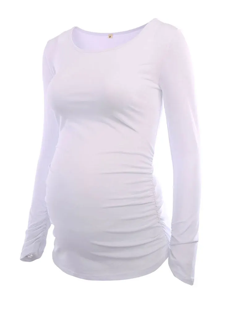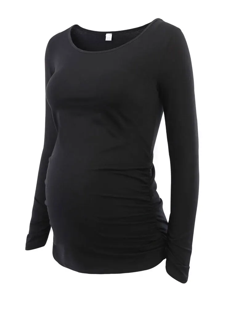 Одежда для мамы, Одежда для беременных, блузки для беременных, топы с рюшами, длинный рукав, круглый вырез, Футболка для беременных, женская одежда