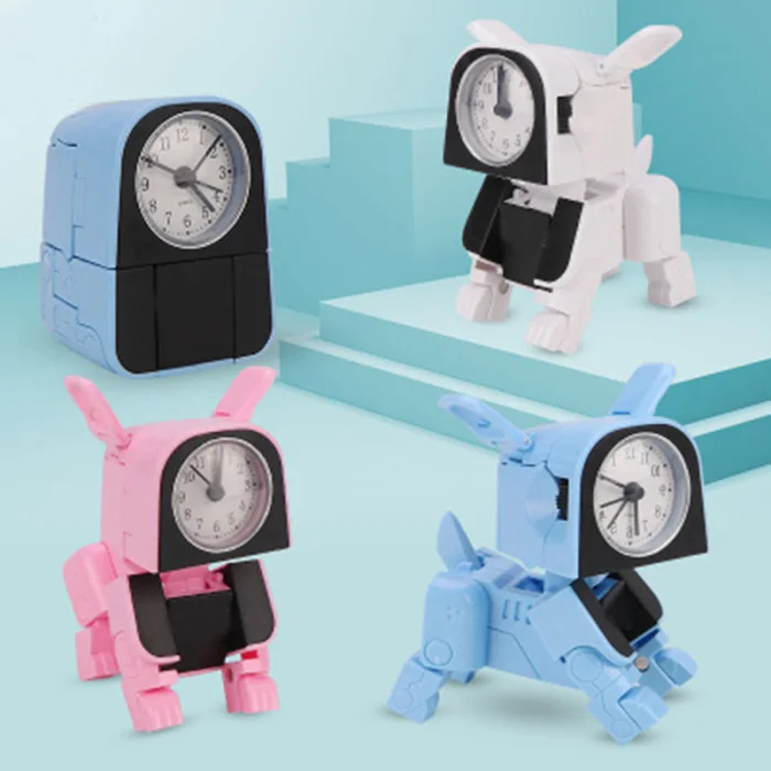 Cartoon Deformation Machine Dog Alarm Clock Cute Transform Dog Toy Alarm Clock for Kids Non-Ticking E2S