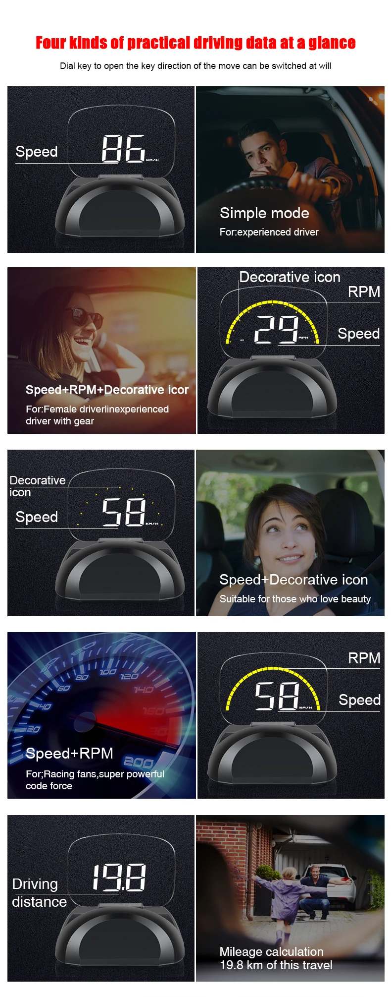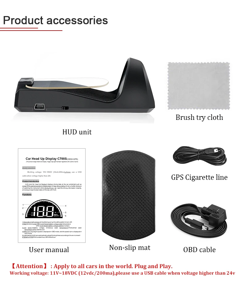 1. Автомобиль WiiYii 100% гарантия бренда 2. Безопасное вождение, держите глаза впереди, не нужно опускать голову, чтобы увидеть приборную панель во время вождения 3. Легко установить, нужно только подключить HUD с автомобильным OBD портом с помощью OBD кабеля, HUD будет отображаться, когда автомобильный двигатель ВКЛ/ВЫКЛ 4. Чрезмерная сигнализация вождения, Сигнализация низкого напряжения, сверхскоростная сигнализация, высокотемпературная сигнализация, неисправная сигнализация двигателя 6. KMH и MPH переключатель свободно. 7. Совместимость для: автомобилей в стандарте OBD II (после 2007 года) 8. Место установки: на центральной консоли 9. Подключение: подключение к автомобильному порту OBD
